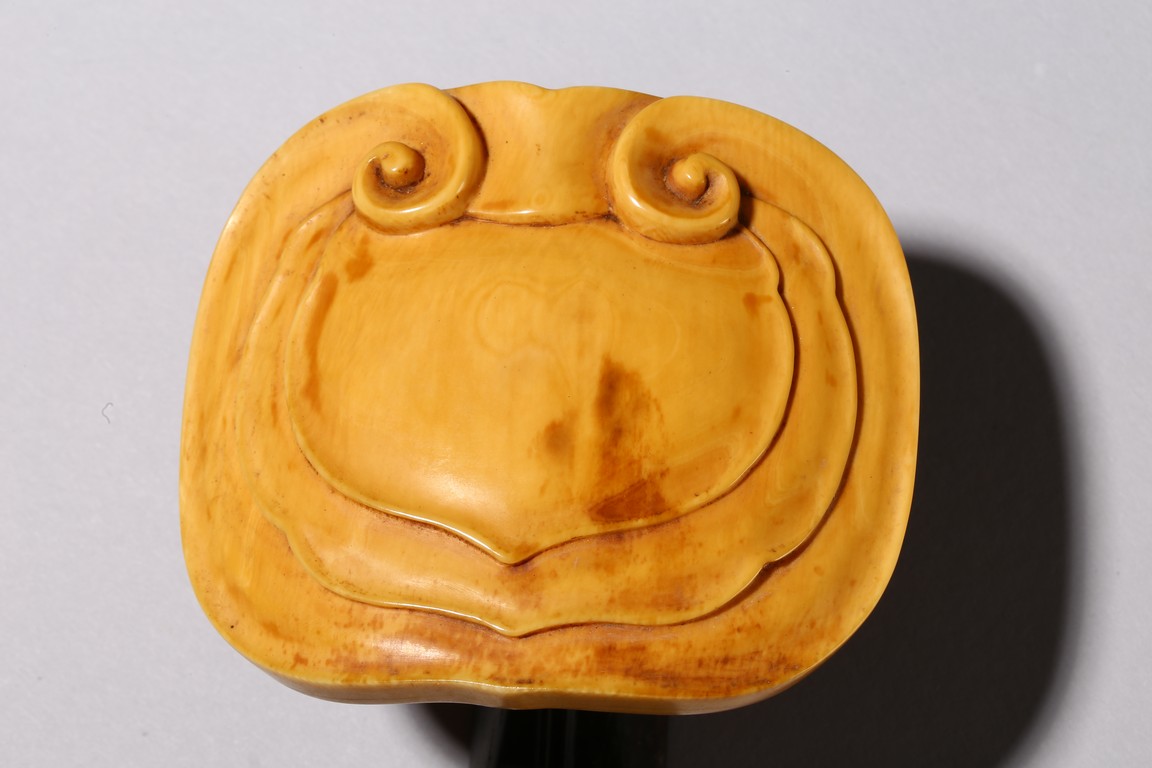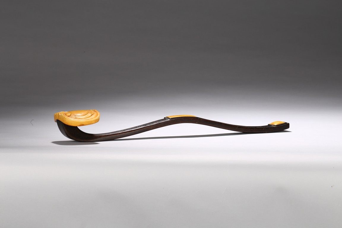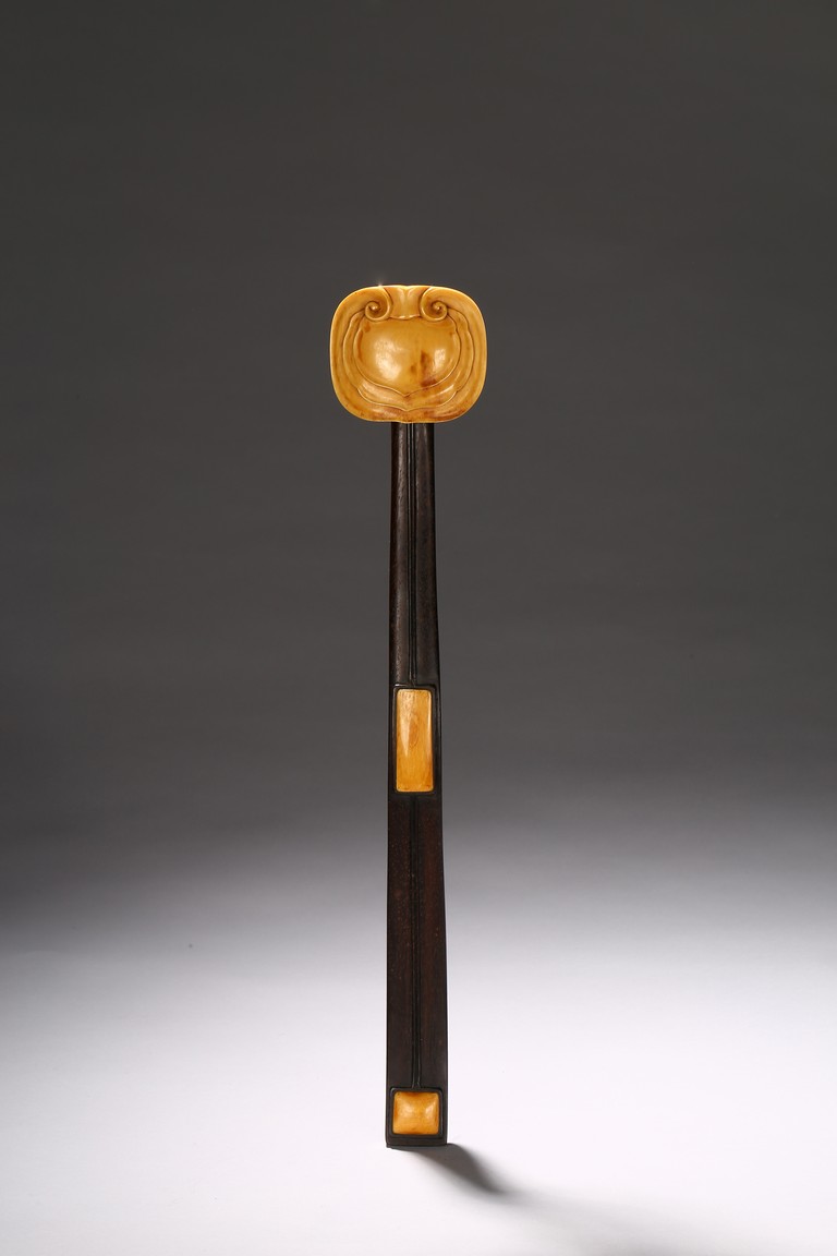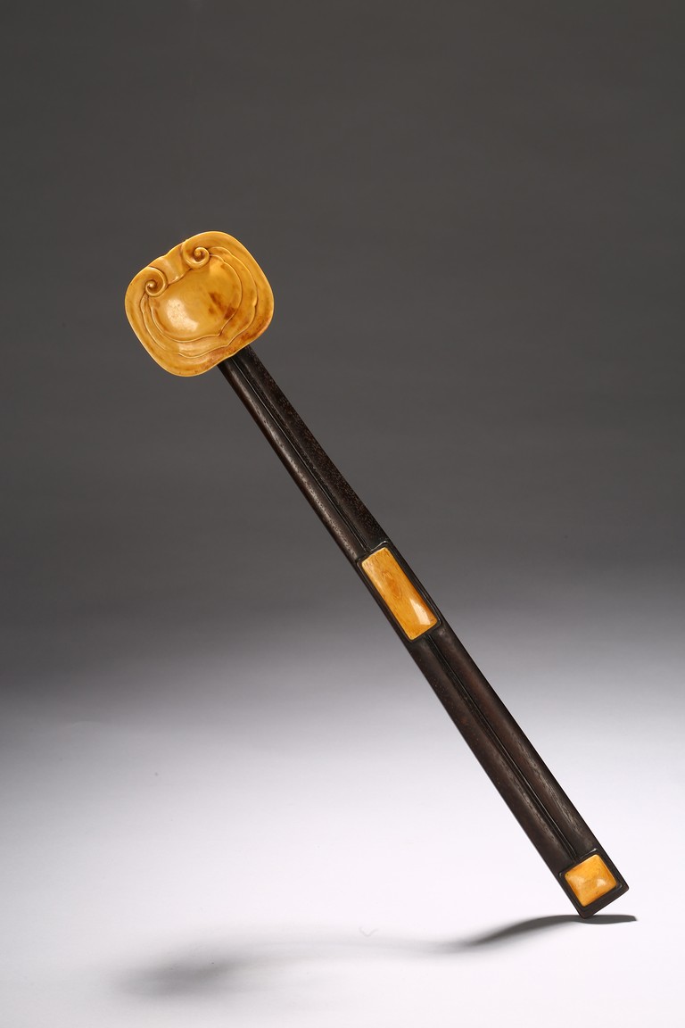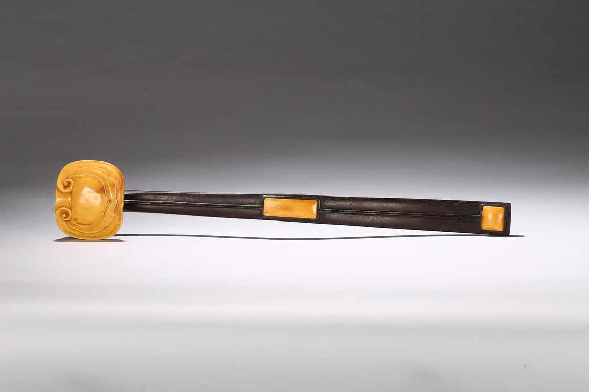 The rounded square shape ruyi head carved in the form of lingzhi head。 Early Qing Dynasty period.