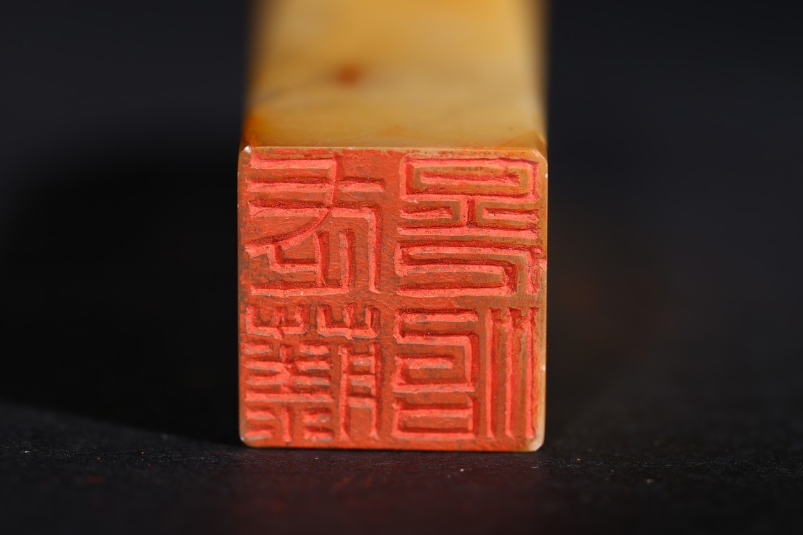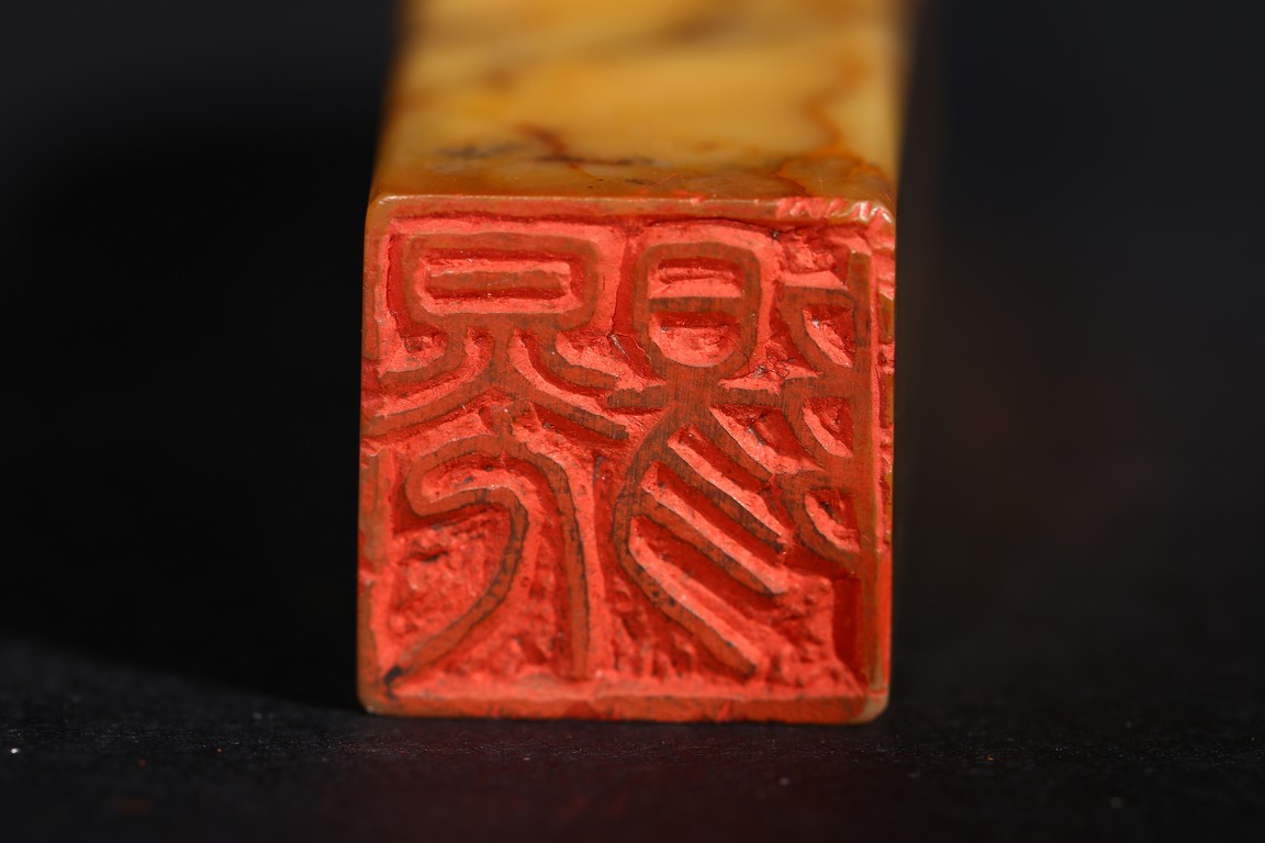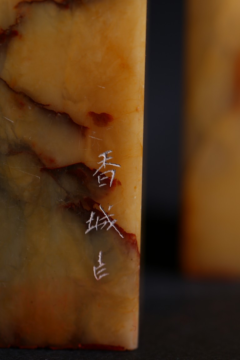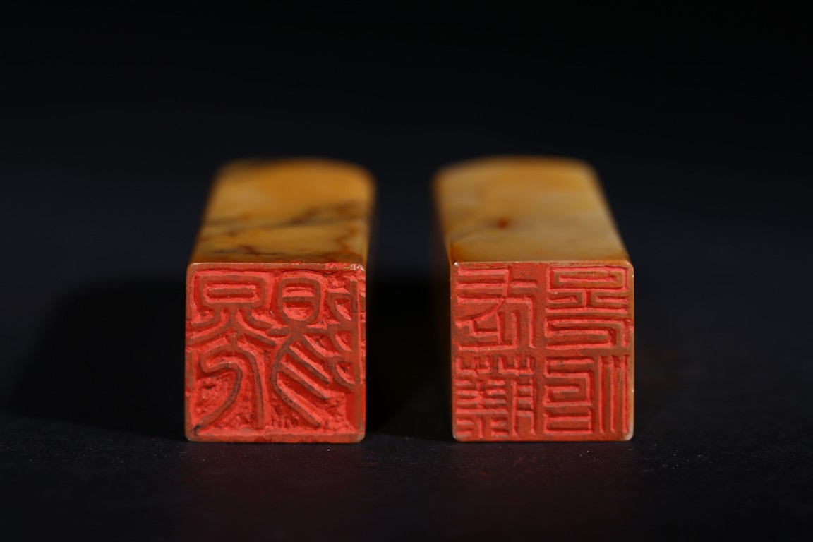 Each of square section with an irregularly shaped top carved with cloud pattern, inscribed to the lower side with three character mark, seal face carved with two and four characters respectively. Qing Dynasty period.