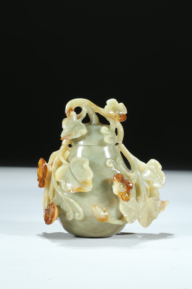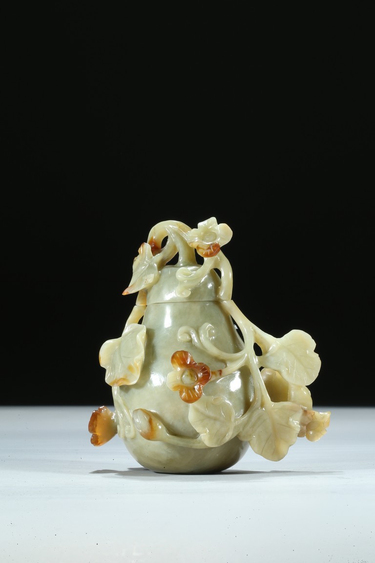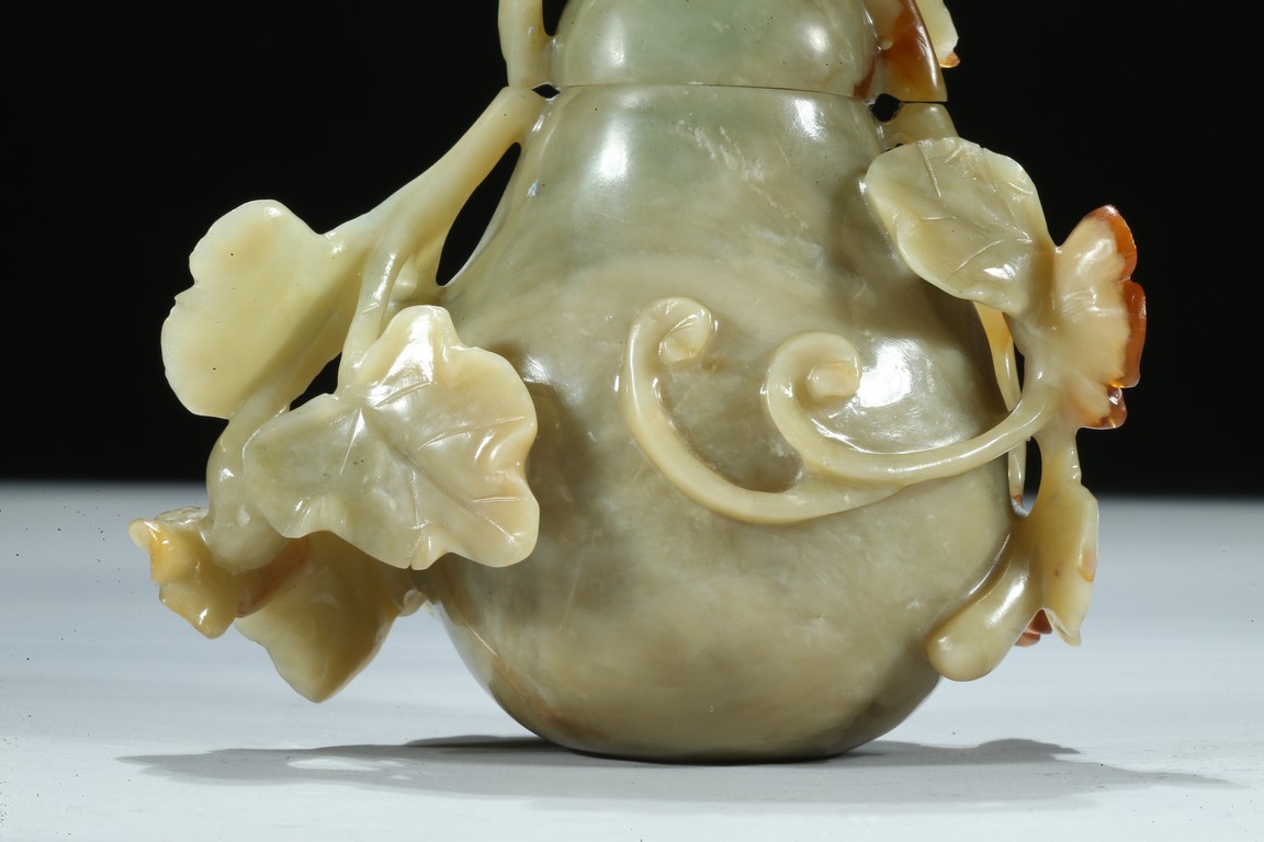 A CELADON JADE CARVED GOURD    清 青玉巧雕葫蘆瓶
