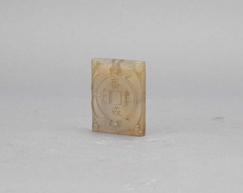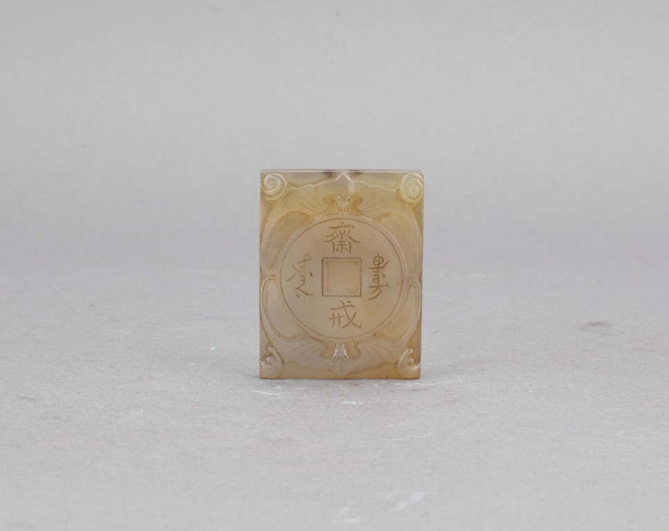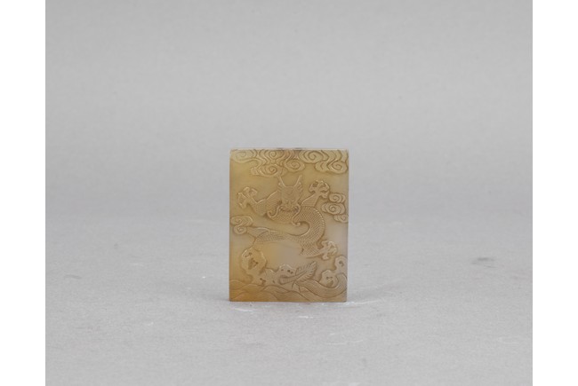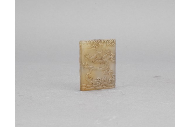 Carved on one side with dragon emerging from sea and two character zhai jie on the other side. Qing Dynasty period.