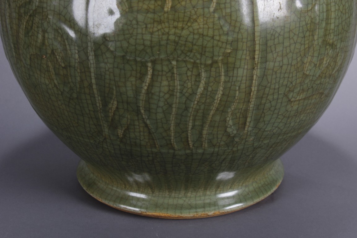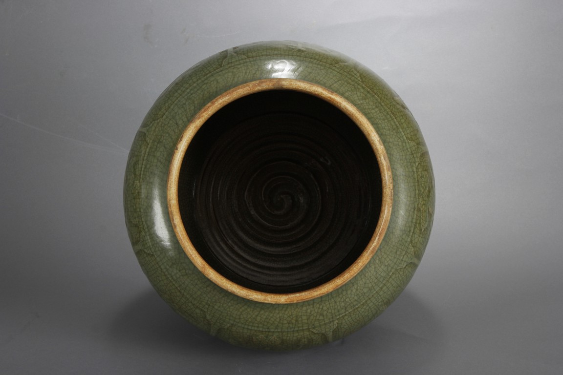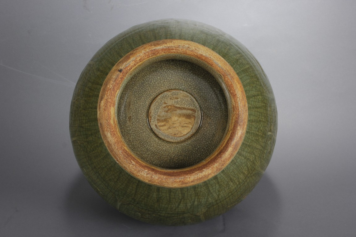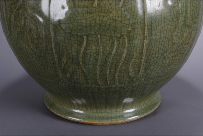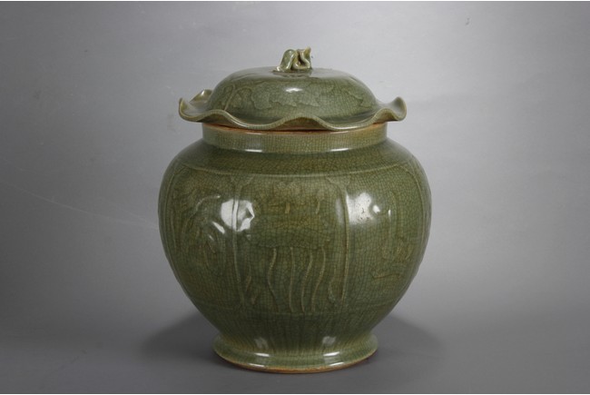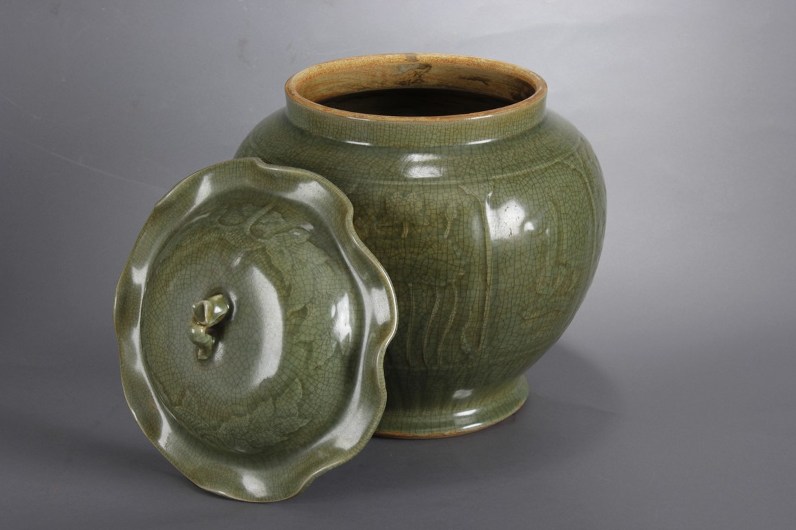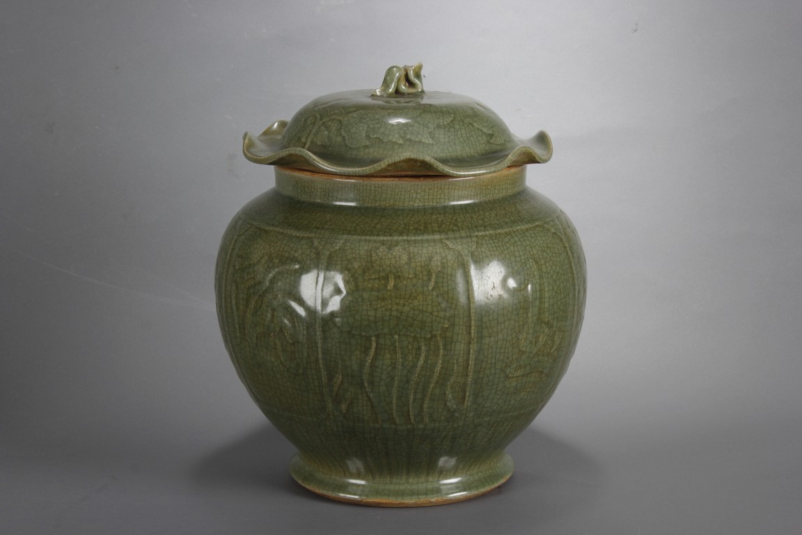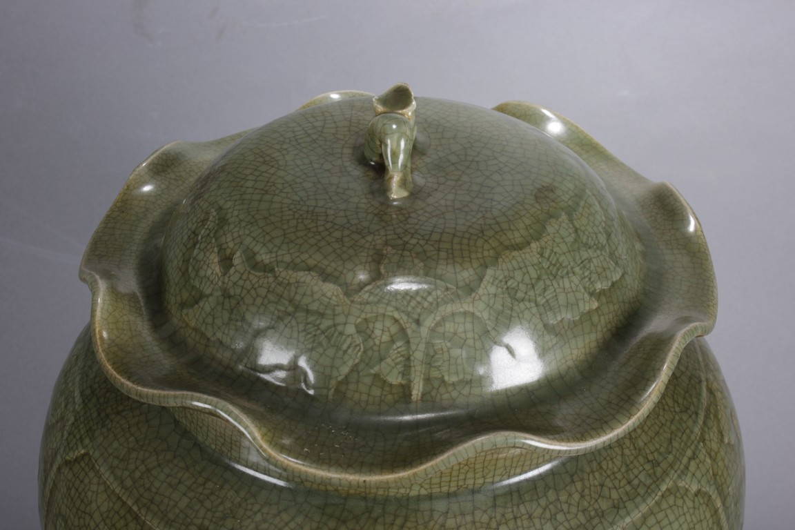 此龍泉青瓷蓋罐做工細緻,圖案及開片符合清代龍泉青瓷蓋罐的標準造型