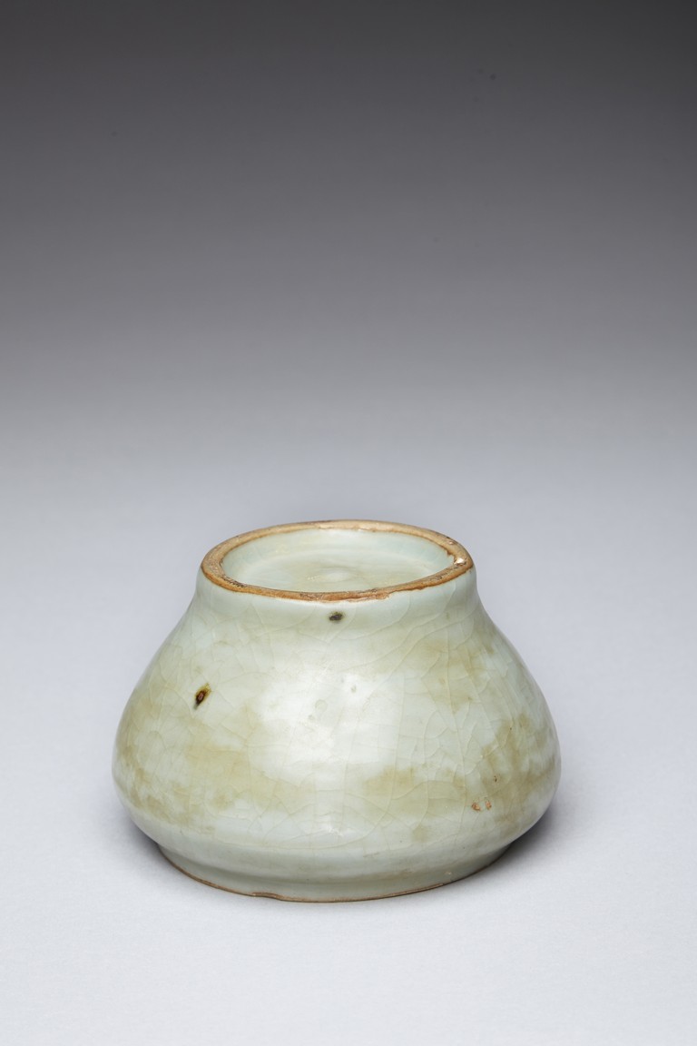 With rounded shoulders tapering to the foot and leaf-from cover, overall glazed in celadon tone. Song Dynasty period.