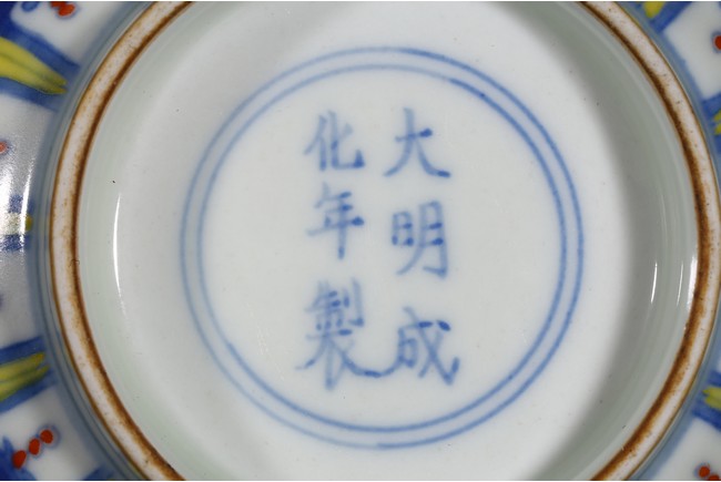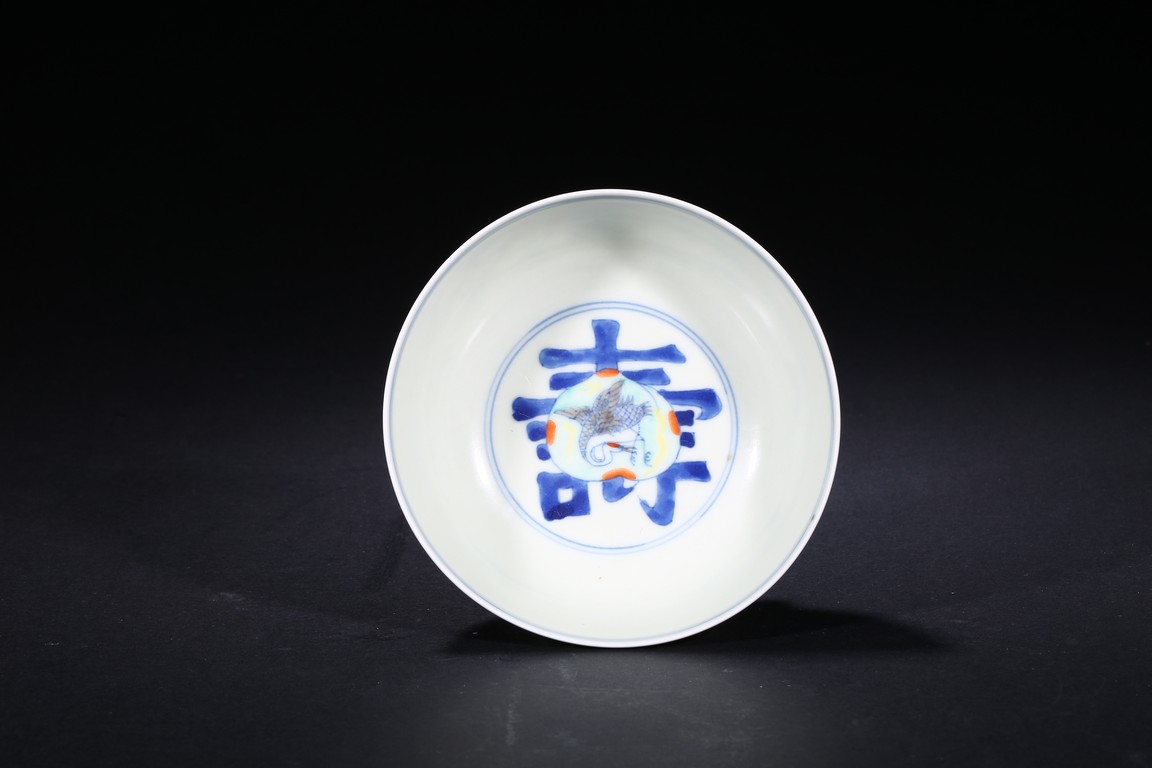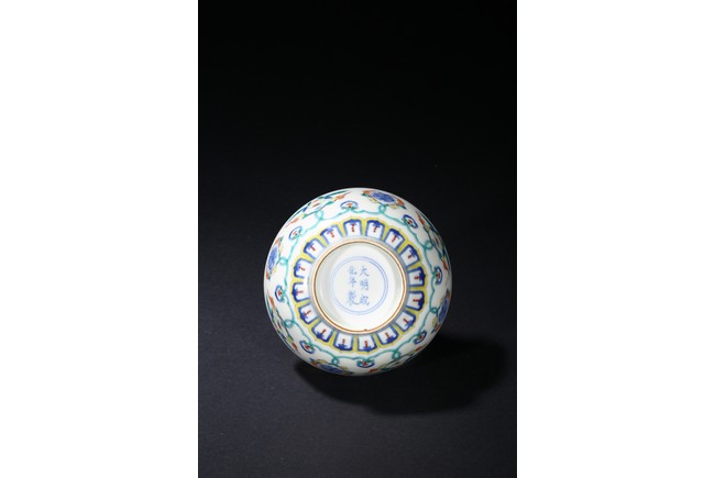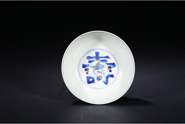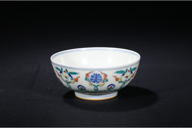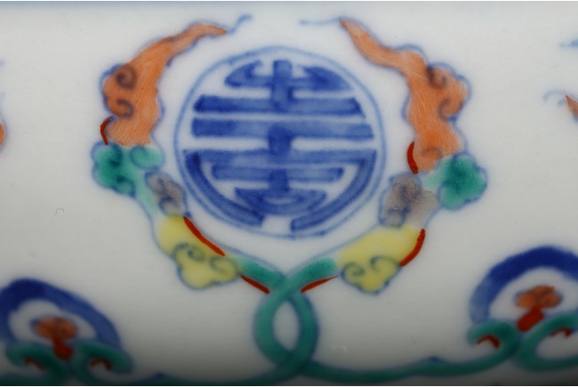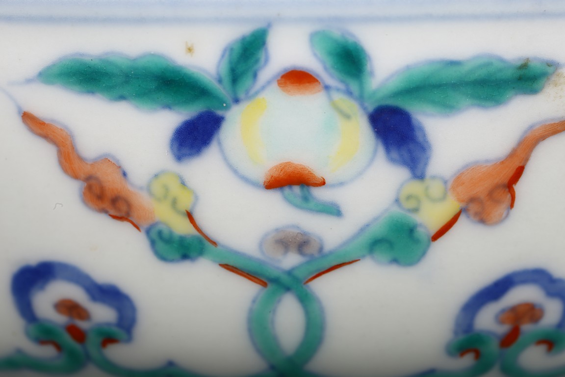 Chenghua-style. Decorated with peach springs scrolling and shou medallion, with double line rings around mouth, the base with apocryphal Chenghua mark. Republic period.