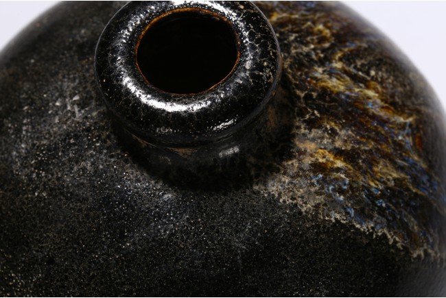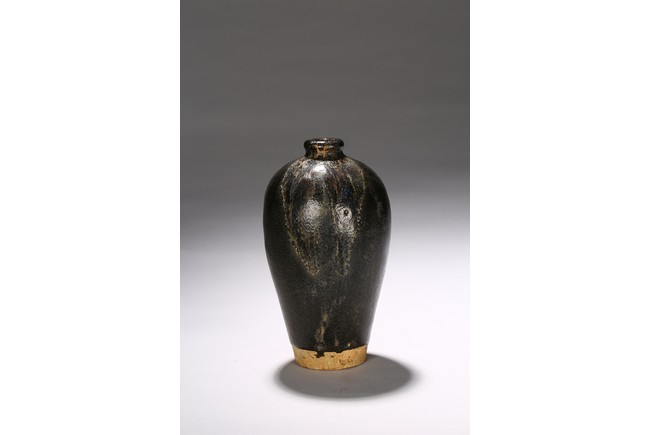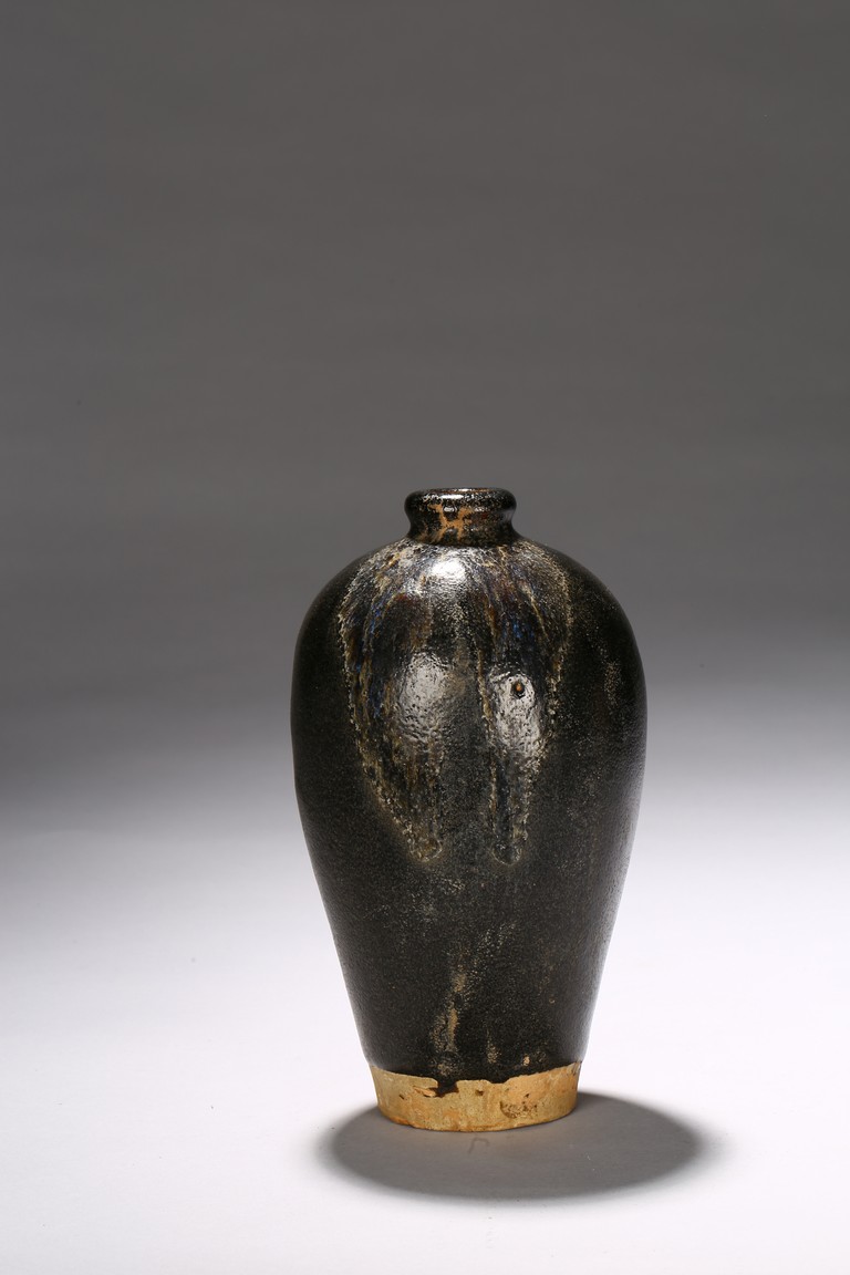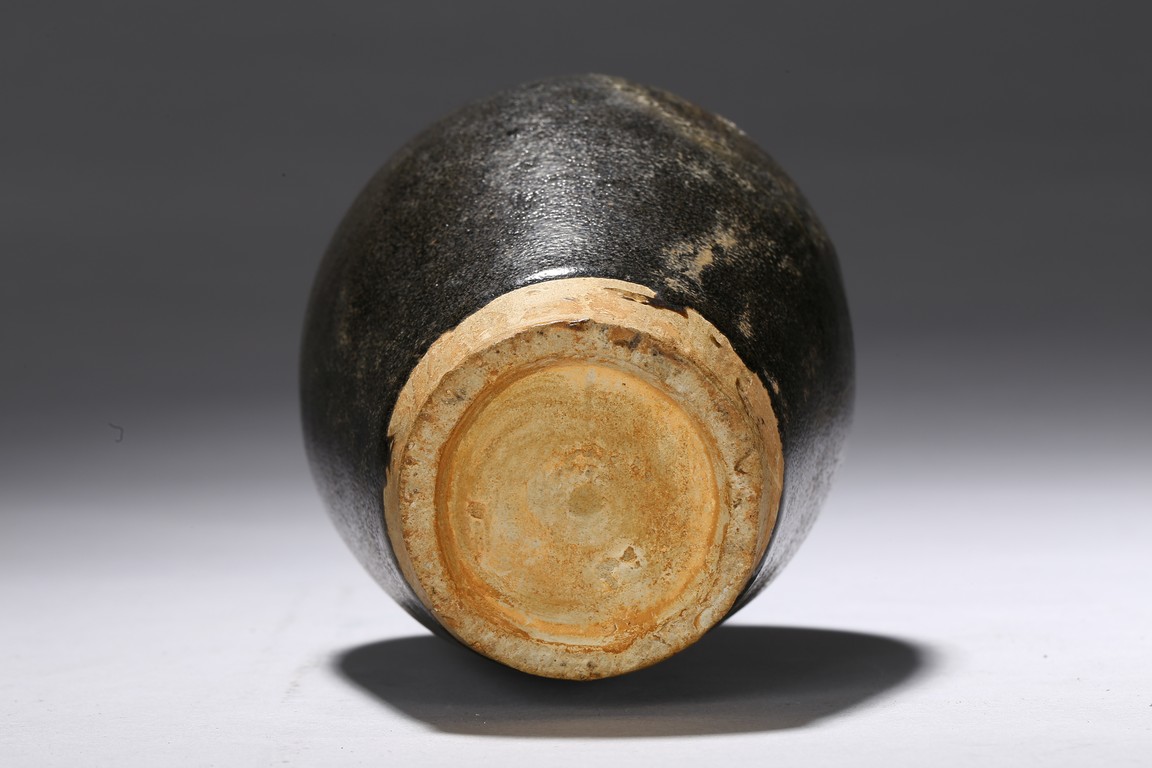 Of ovoid body with rounded shoulder,short waisted neck and everted mouth,all under an black glazed,with russet and brown glazed that falls in irregular streaks. Ming Dynasty Period.