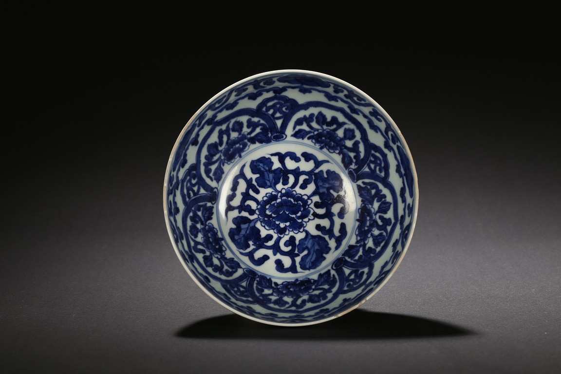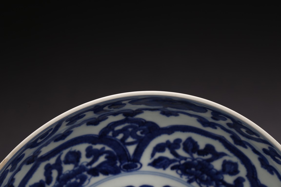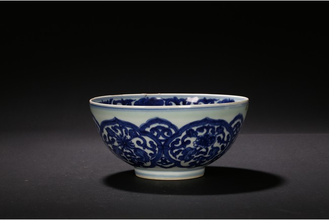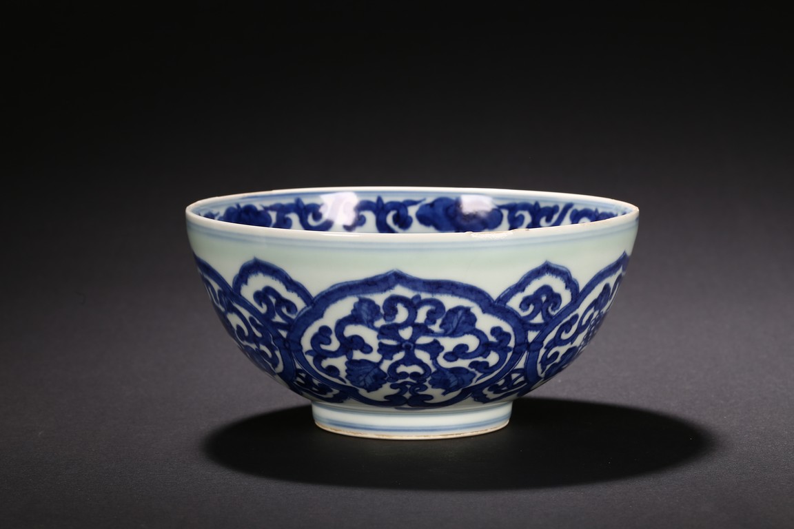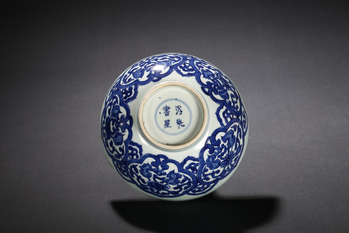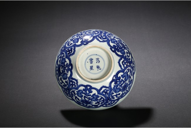 The exterior decorated with leafy scrolled floral decoration within a shape ruyi head cartouche, interior further enamelled with similar design, the base with four character mark. Qing Dynasty period.