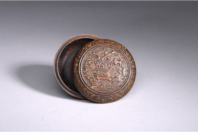 Of circular shape, decorated with intricate pattern overall, with cover. Qing Dynasty period.