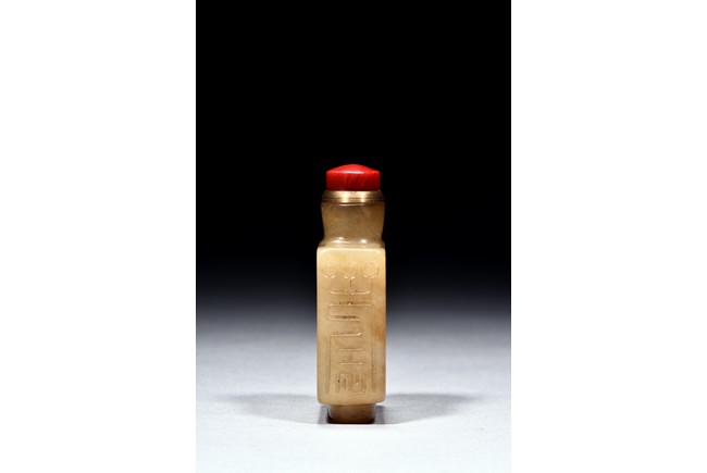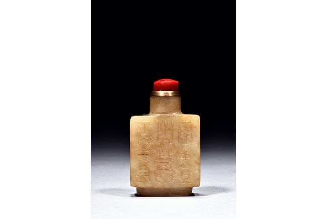 Of rectangular form,the body is carved with seal script inscriptions to the sides,front,and reverse. Qing Dynasty period.