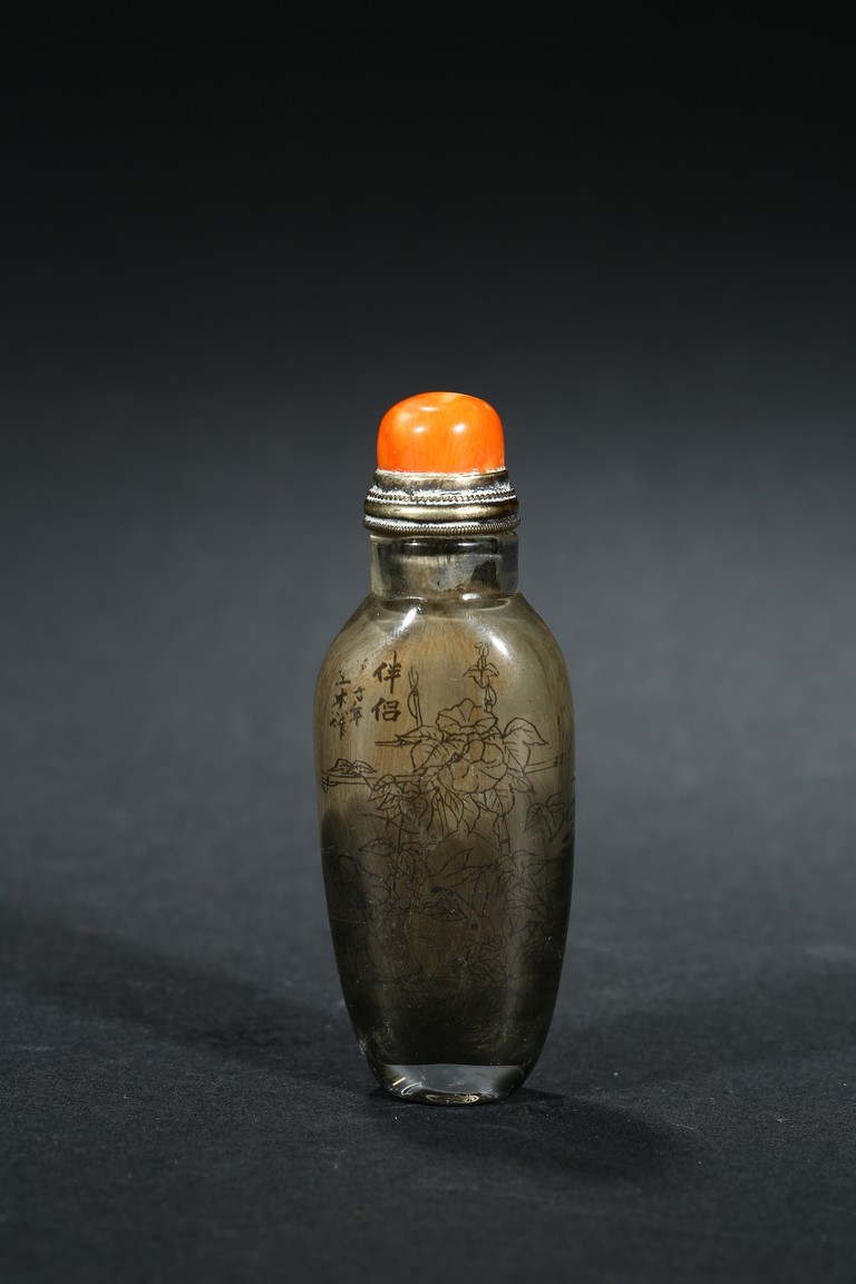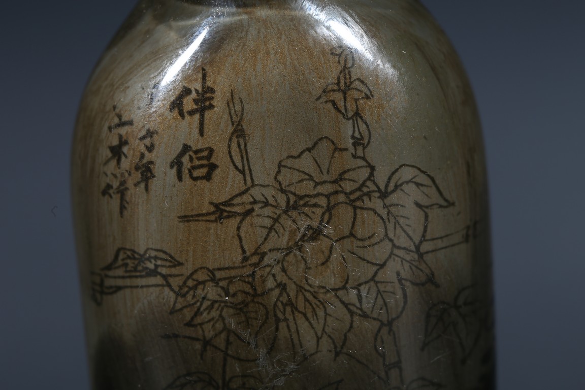 AN INSIDE PAINTED SNUFF BOTTLE    清 內畫植物鼻煙壺
