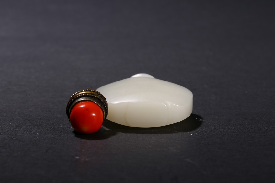 The flattened snuff bottle is of even white tone. Republic period.