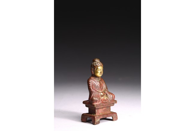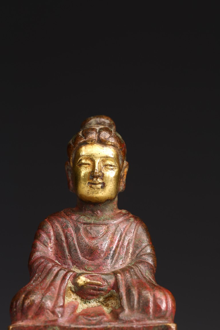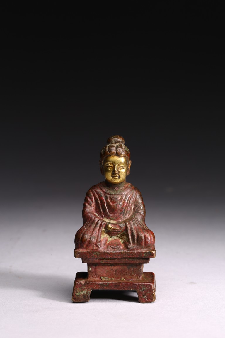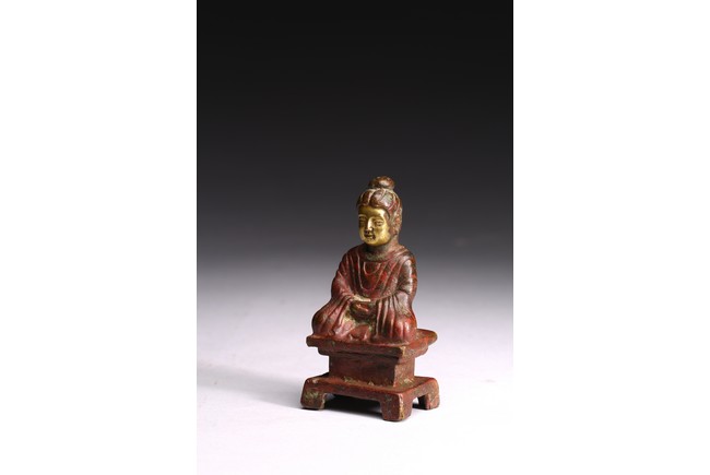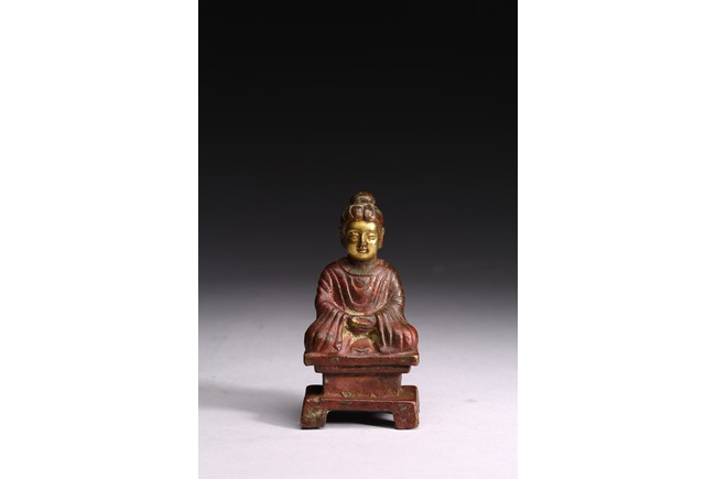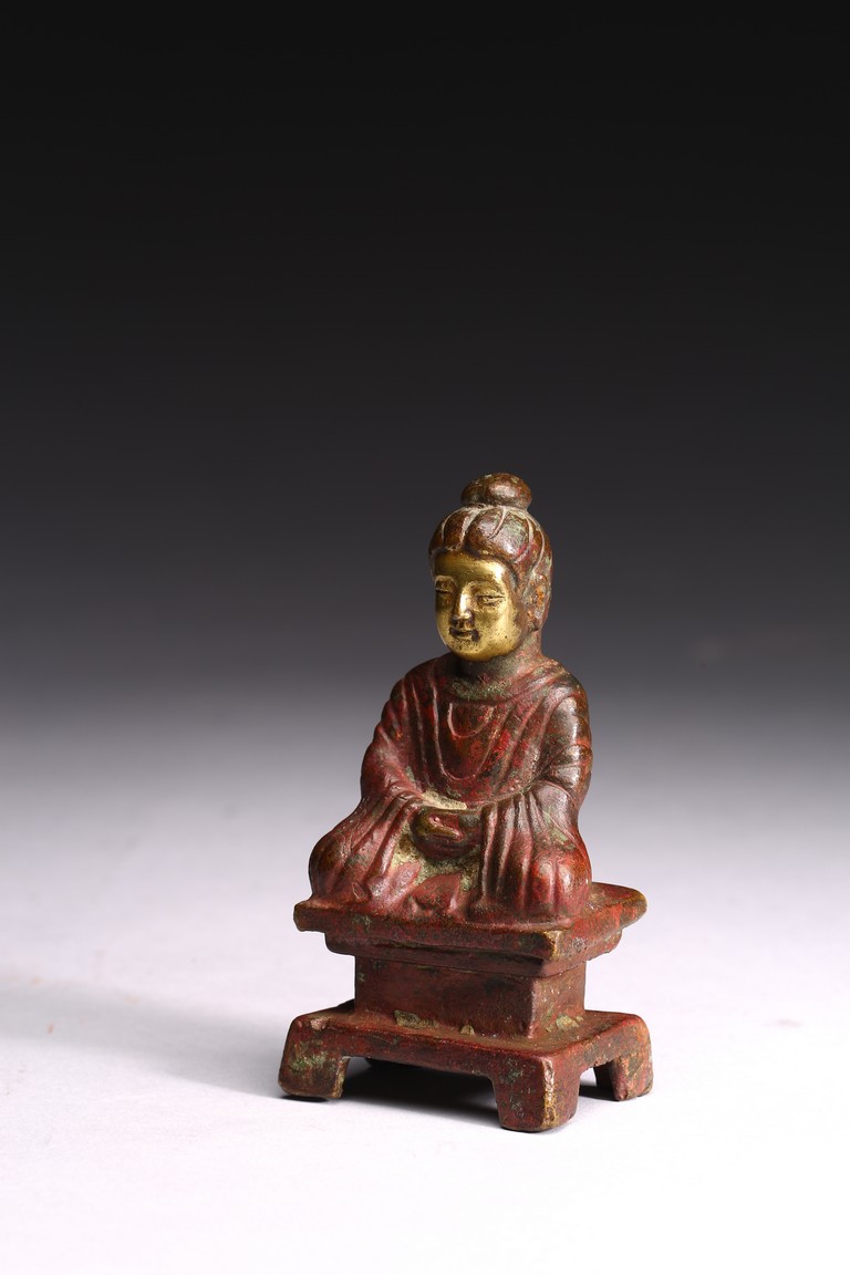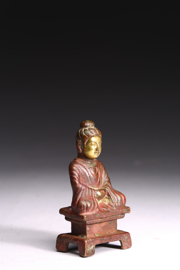 A GILT-BRONZE FIGURE OF BUDDHA 銅鎏金小佛像