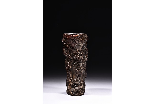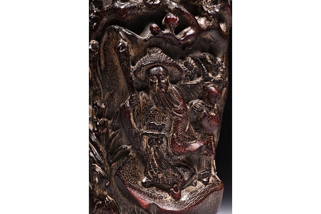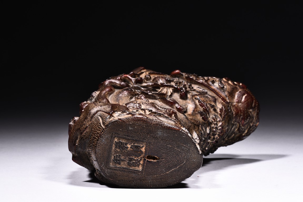 此拍品所雕山水人物樓閣栩栩如生,層次分明,立體感強,包漿自然,為典型的明代雕工技法。底部刻有“崇禎年制”。
