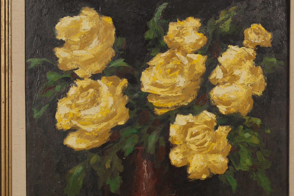 AN OIL ON CANVAS 'YELLOW ROSES' PAINTING 黃玫瑰油畫一幅