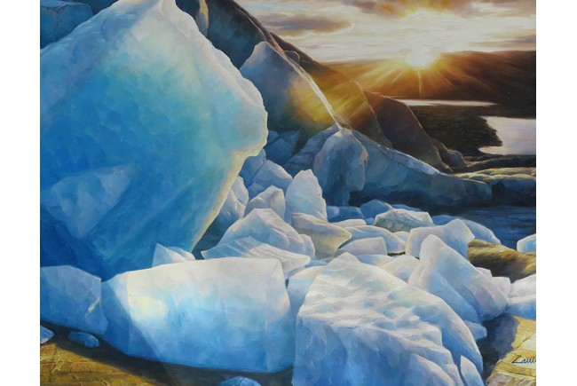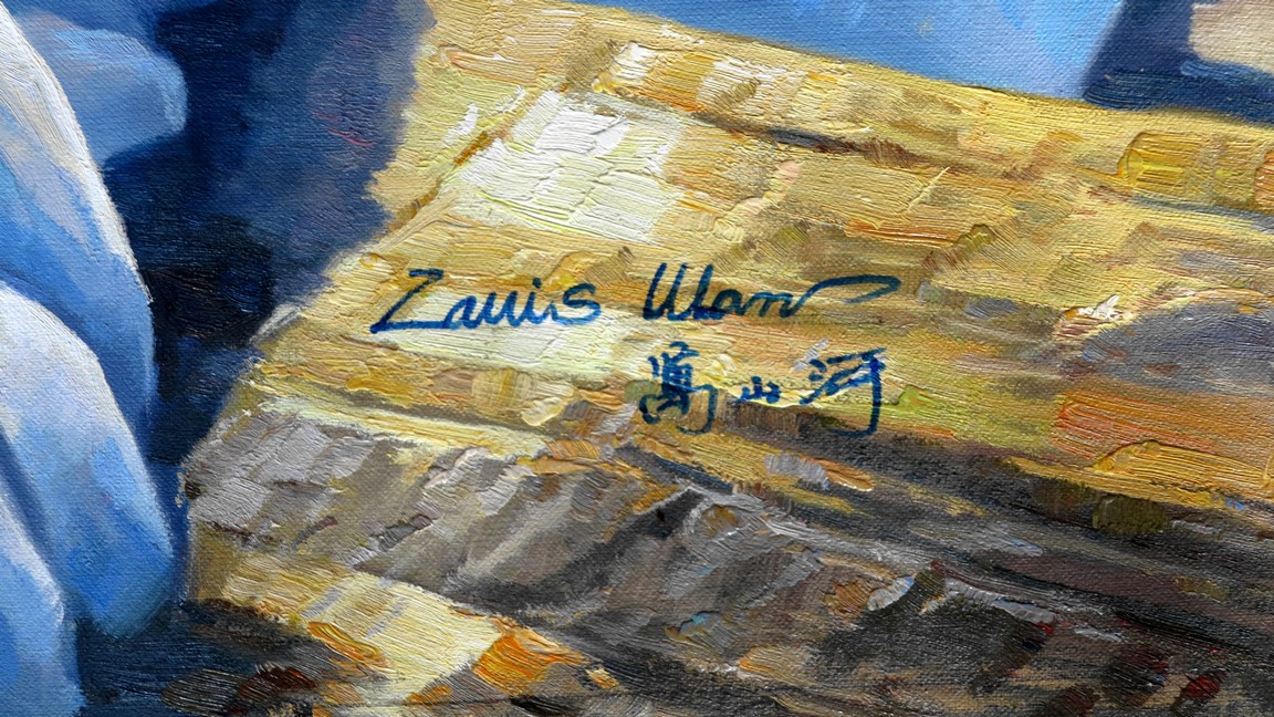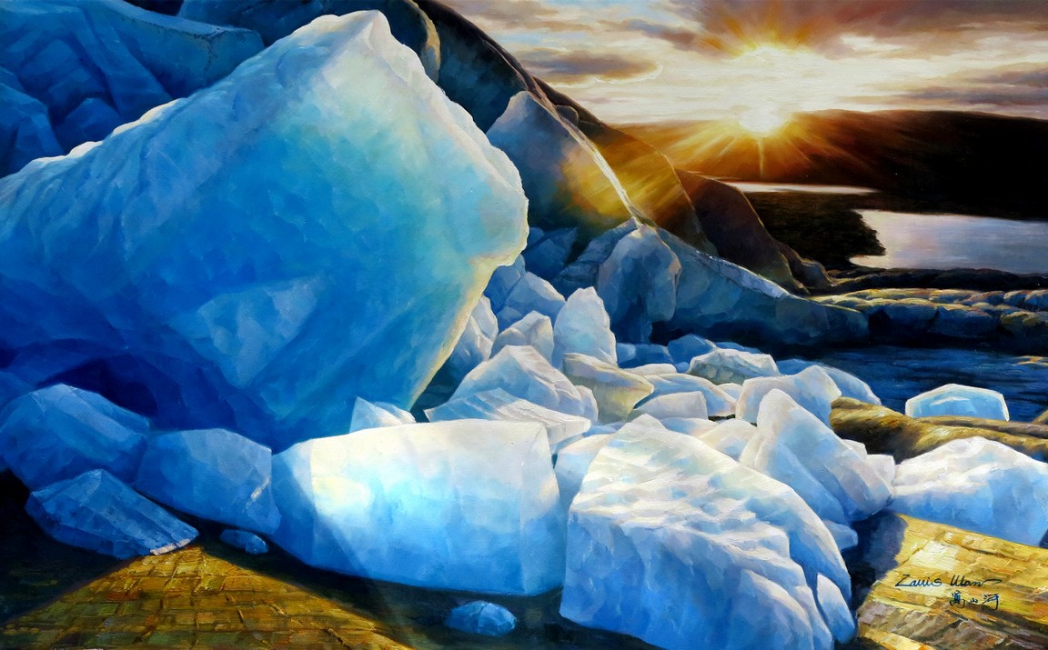 Oil on canvas, Glacier, framed, signed by the artist Wan Shanhe