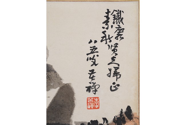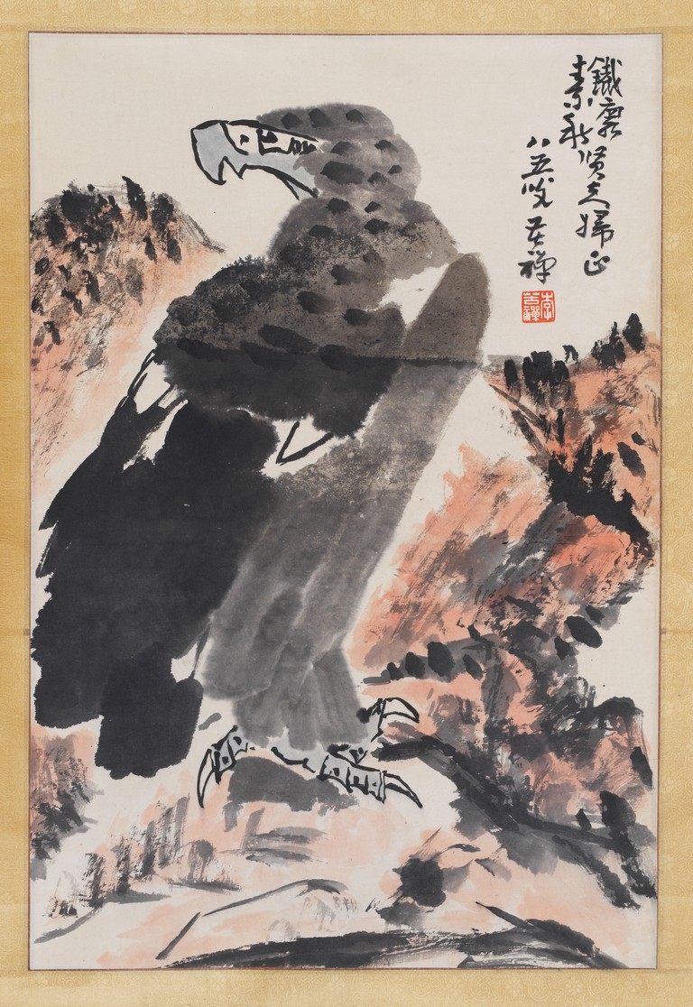 LI KUCHAN: A COLOR AND INK ON PAPER 'EAGLE' PAINTING 李苦禪 鷹石圖 立軸 設色紙本