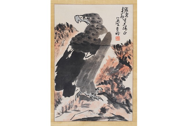 Color and ink on paper, eagle, hanging scroll, inscribed and signed, with one seal mark.