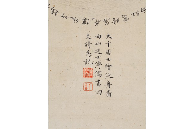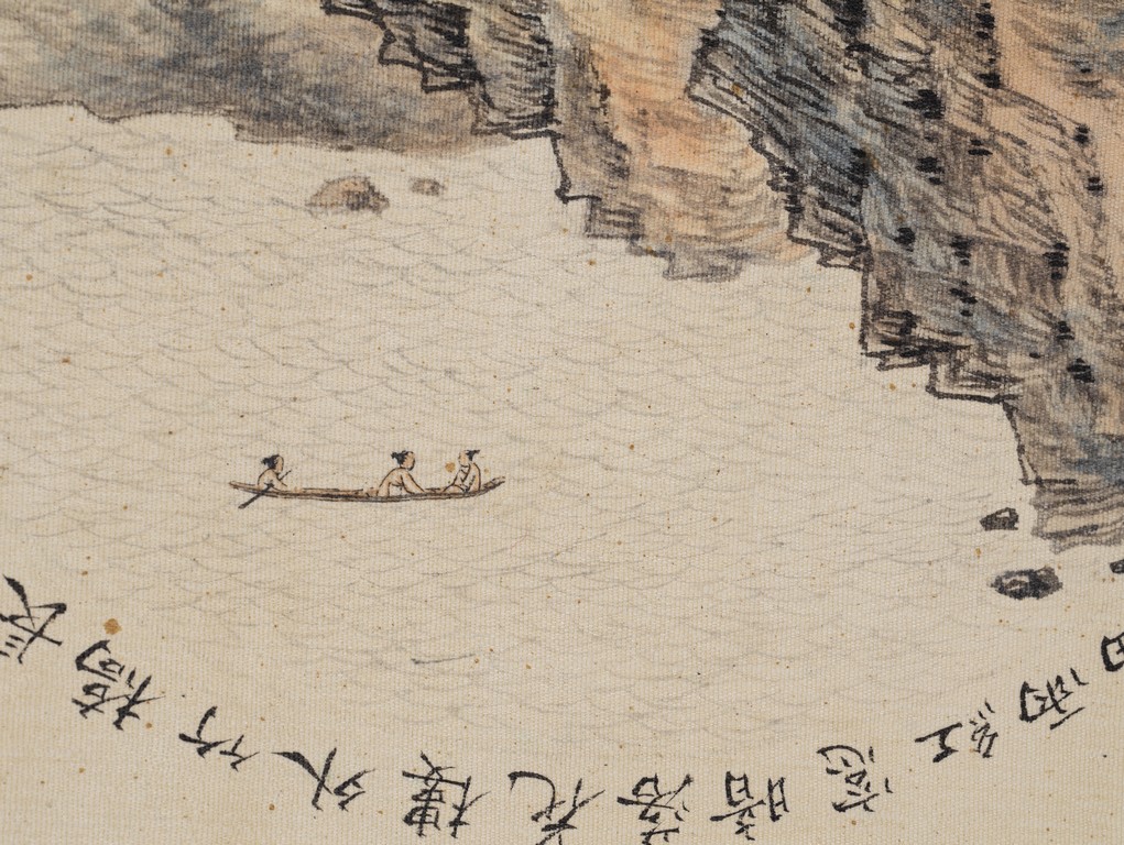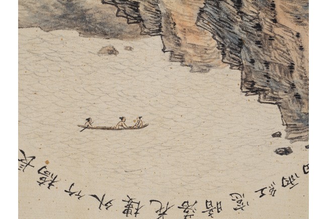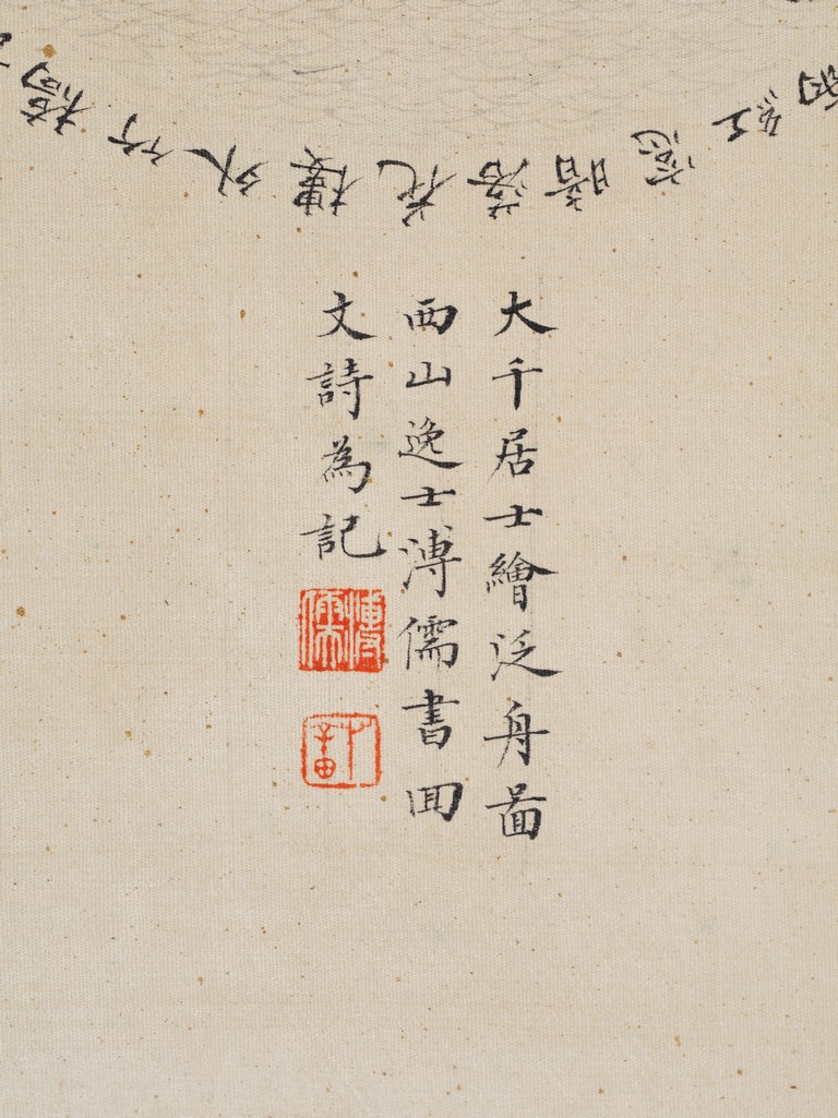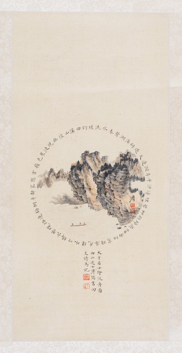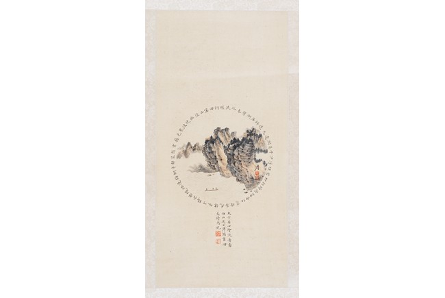 Color and ink on silk, landscape, hanging scroll, inscribed and signed by Zhang Daqian and Pu Ru, with four seal mark.