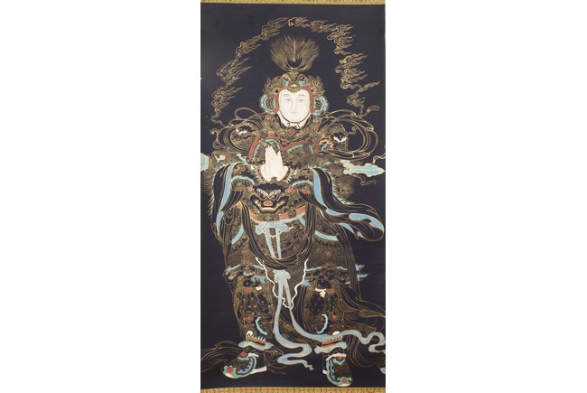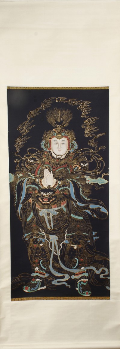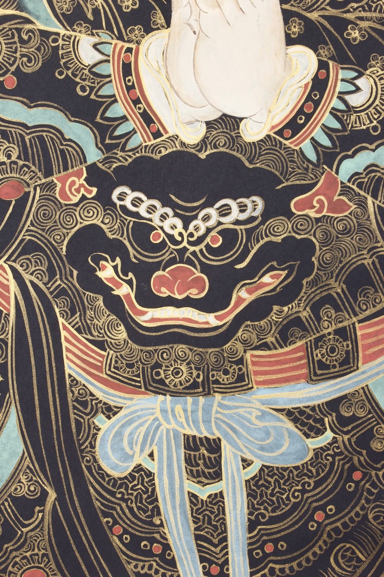 This painting depicts the Buddhist deity Weituo, the Guardian of Buddha. His face and hands are delicately drew and the decorations on clothes are painted elaborately.