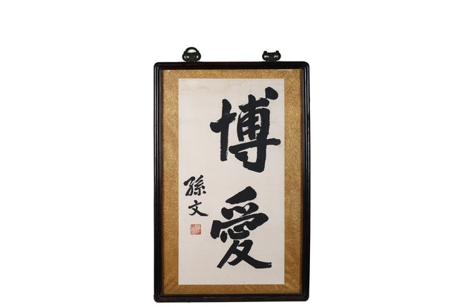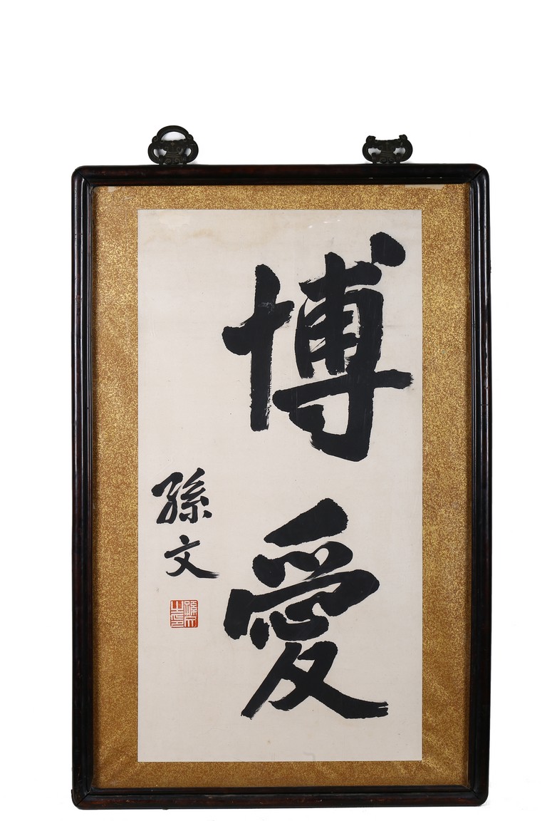 SUN YAT-SEN: INK ON PAPER CALLIGRAPHY    孫文 楷書 鏡框 水墨紙本(框為紫檀)