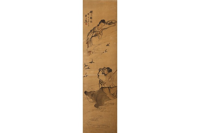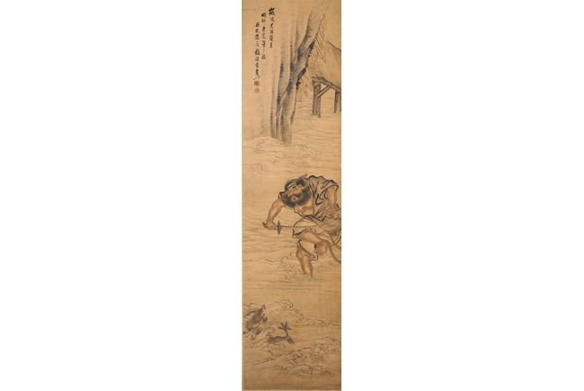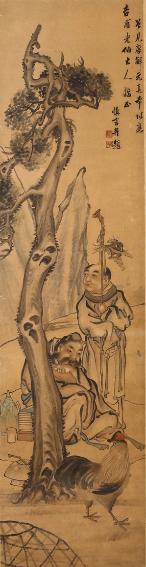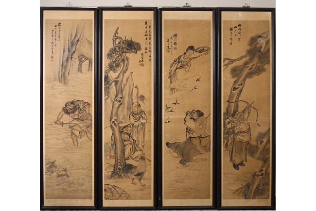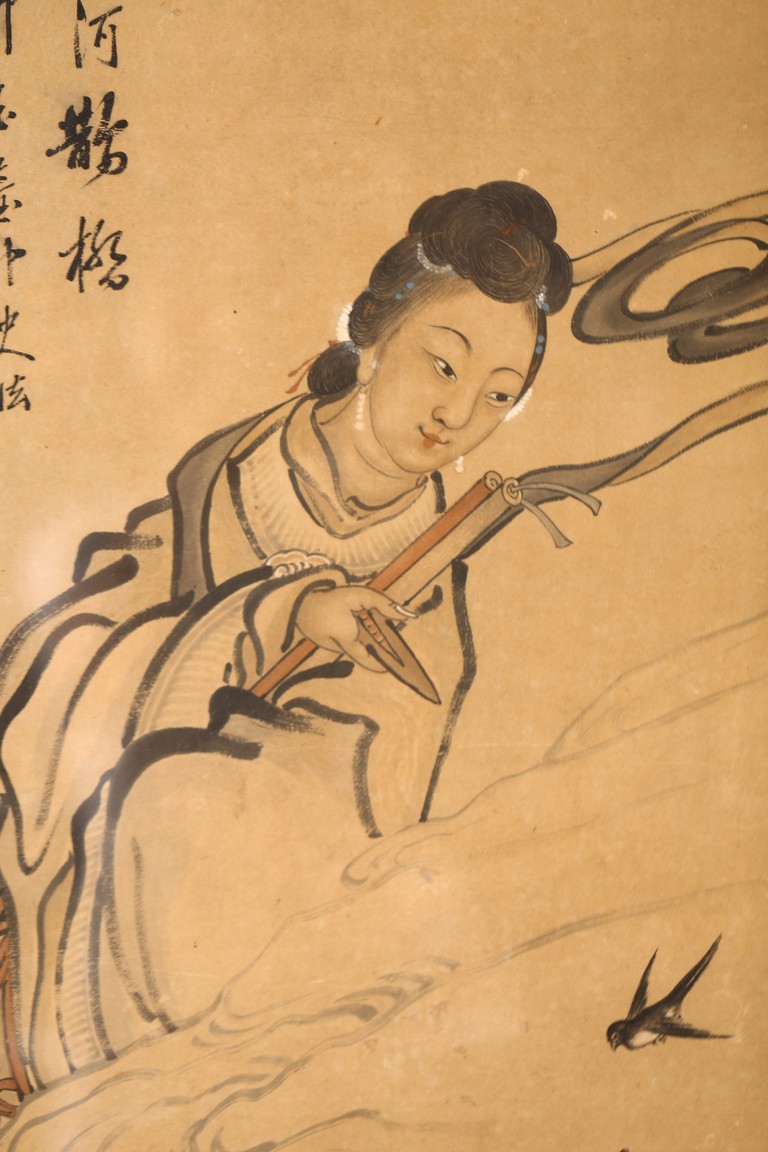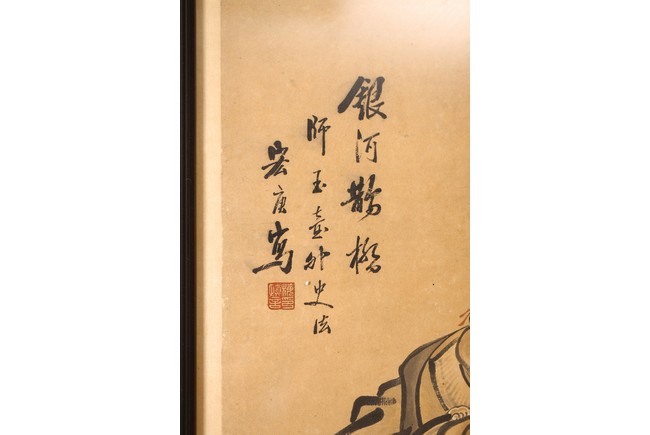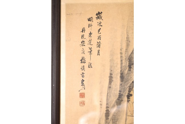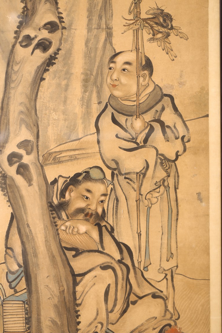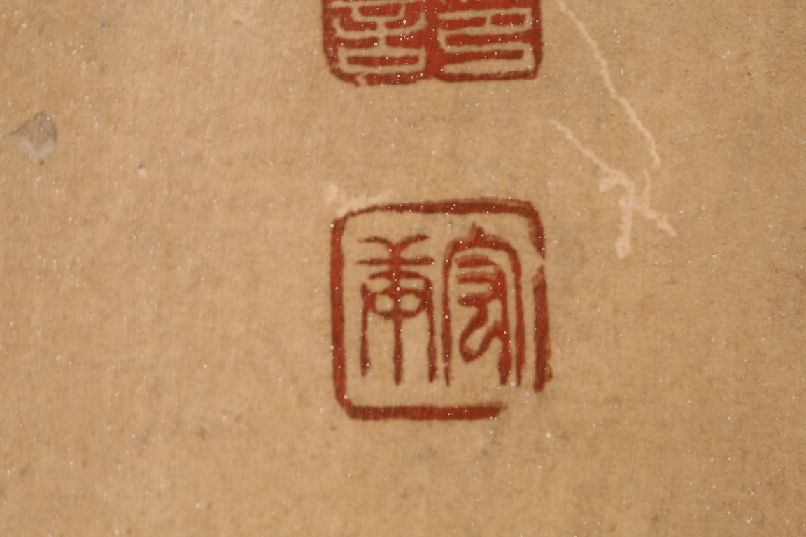 Color and ink on paper, figures, framed, inscribed and signed, with six seal marks.