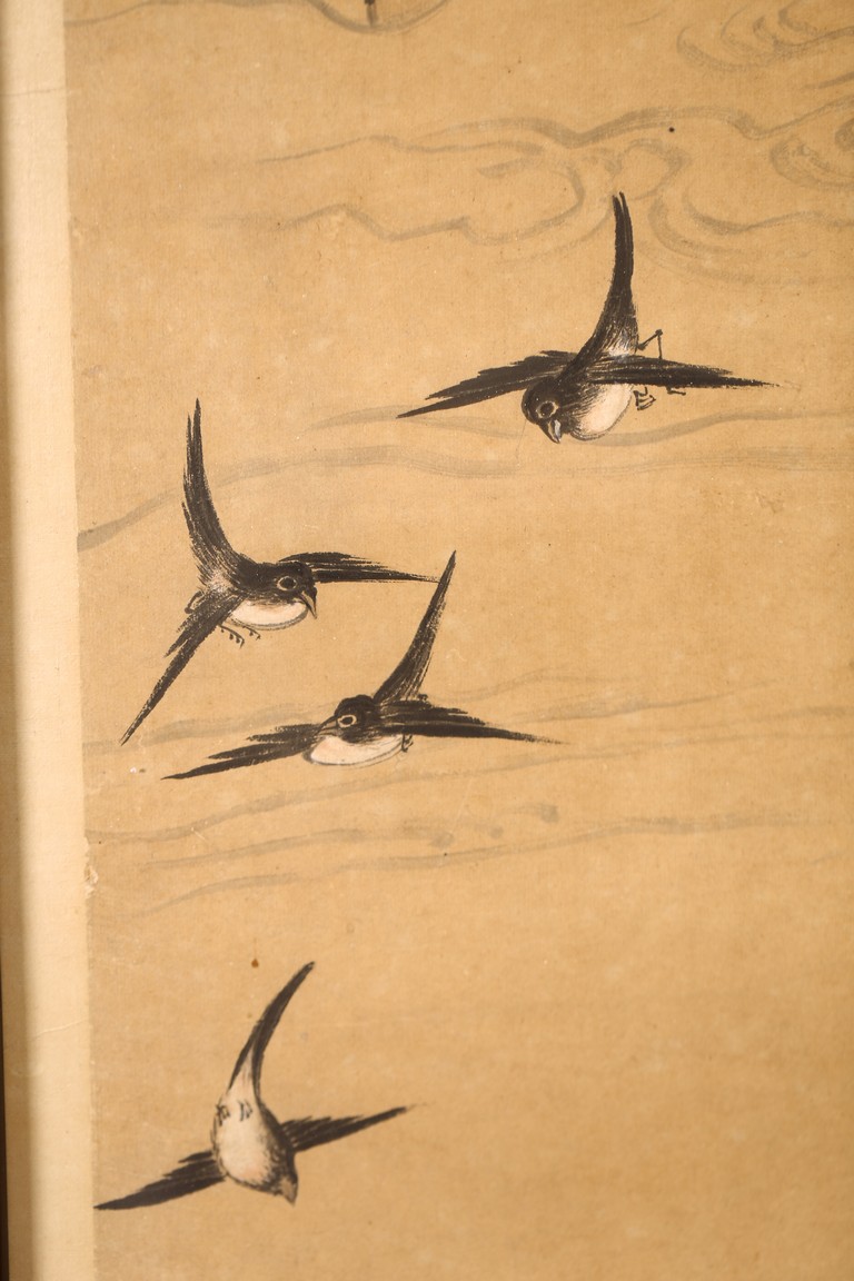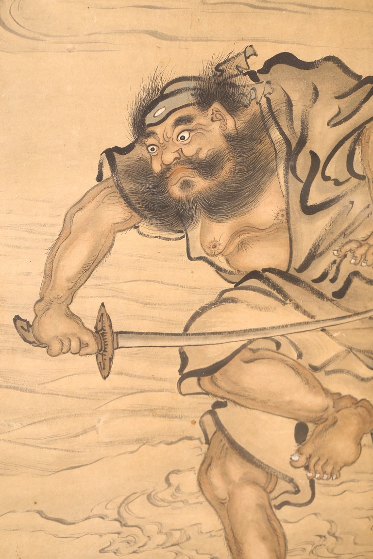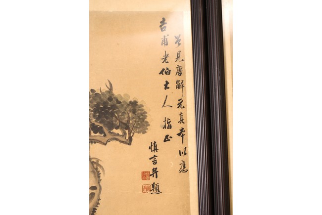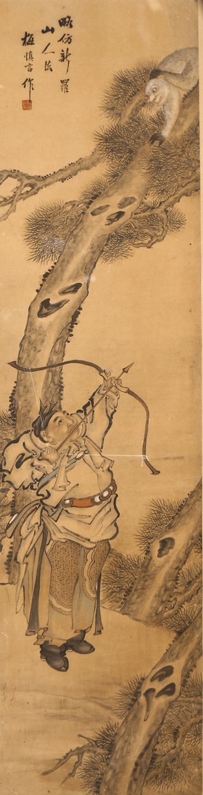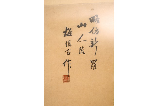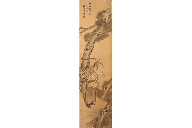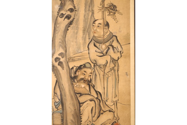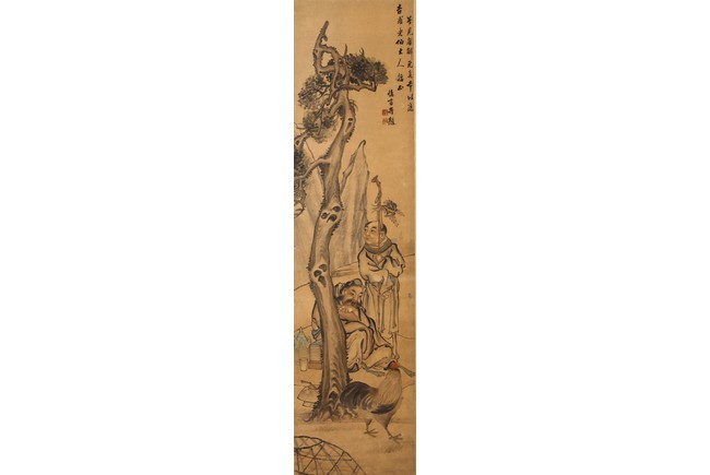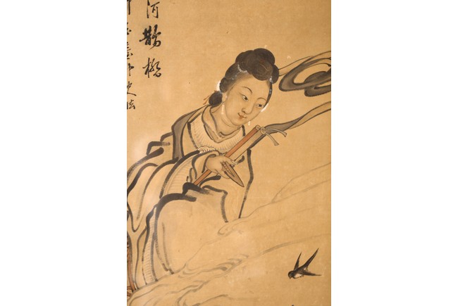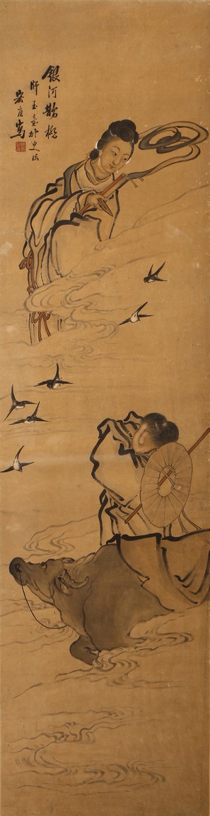 Color and ink on paper, figures, framed, inscribed and signed, with six seal marks.