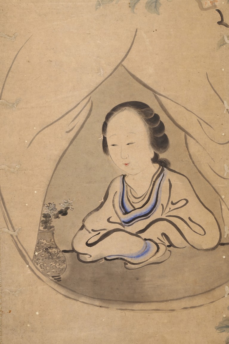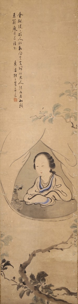 Color and ink on paper. Lady. Hanging scroll. Inscribed and signed,with one seal of the artist.