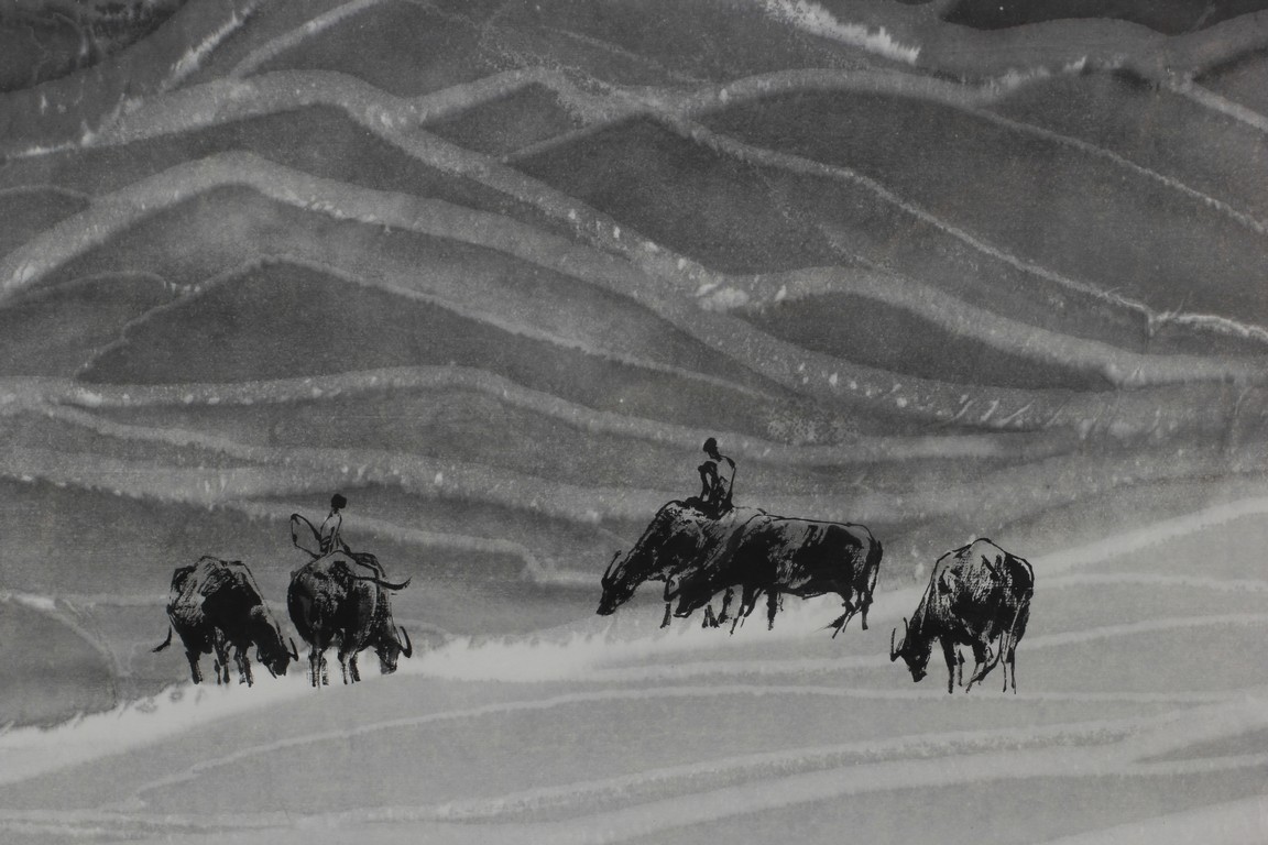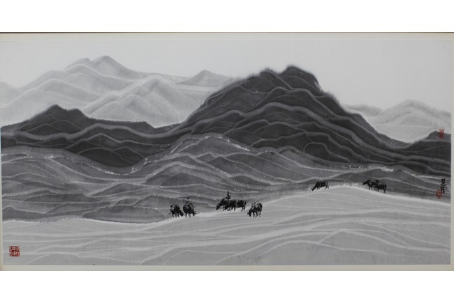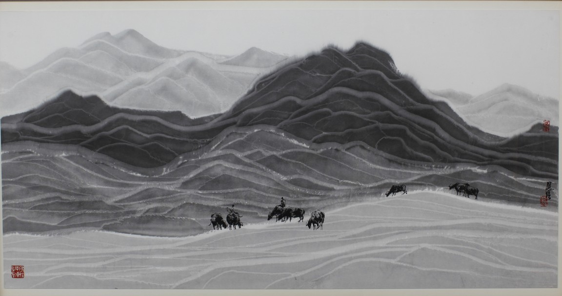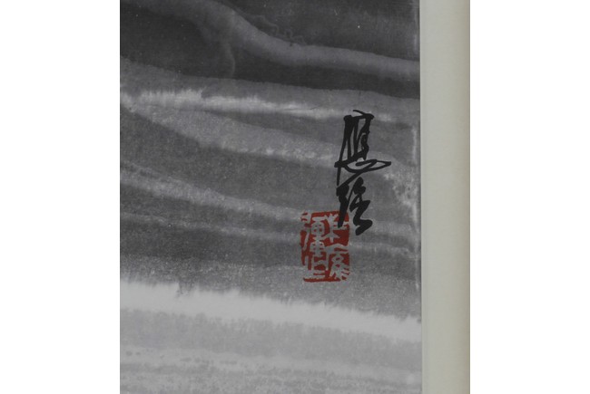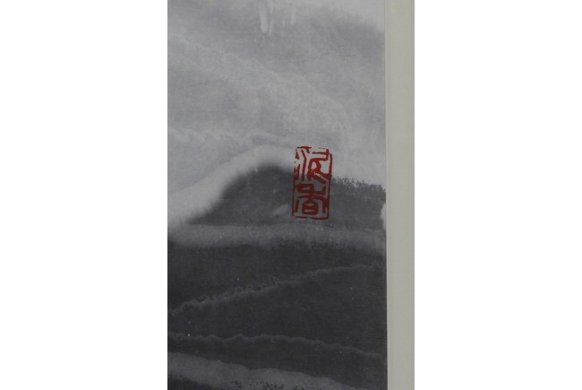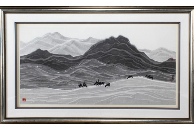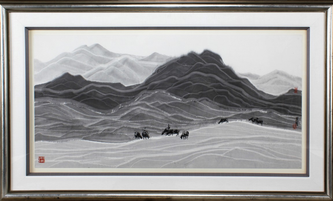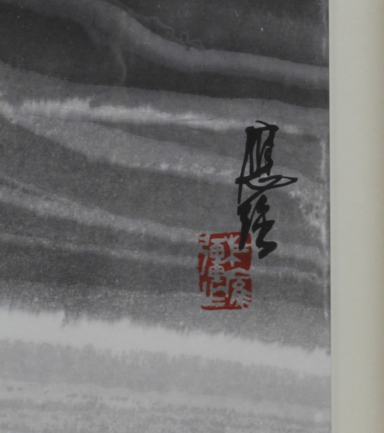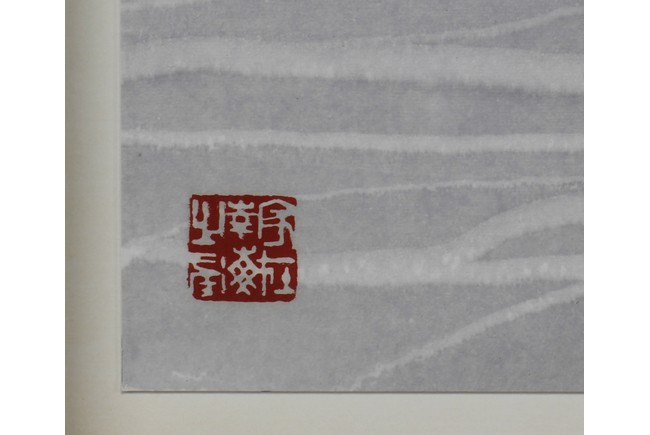 Ink and color on paper. Landscape. Framed. Signed and with three seals of the artist.