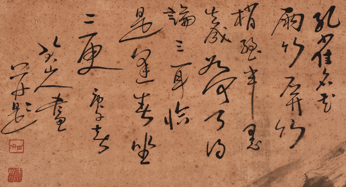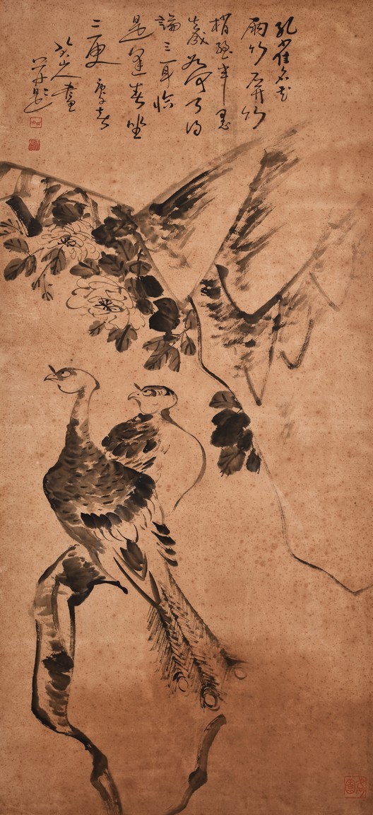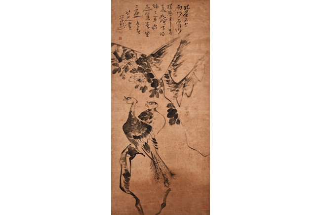 Ink on paper painting. Framed. With inscription and seals. Attributed to Zhu Da.