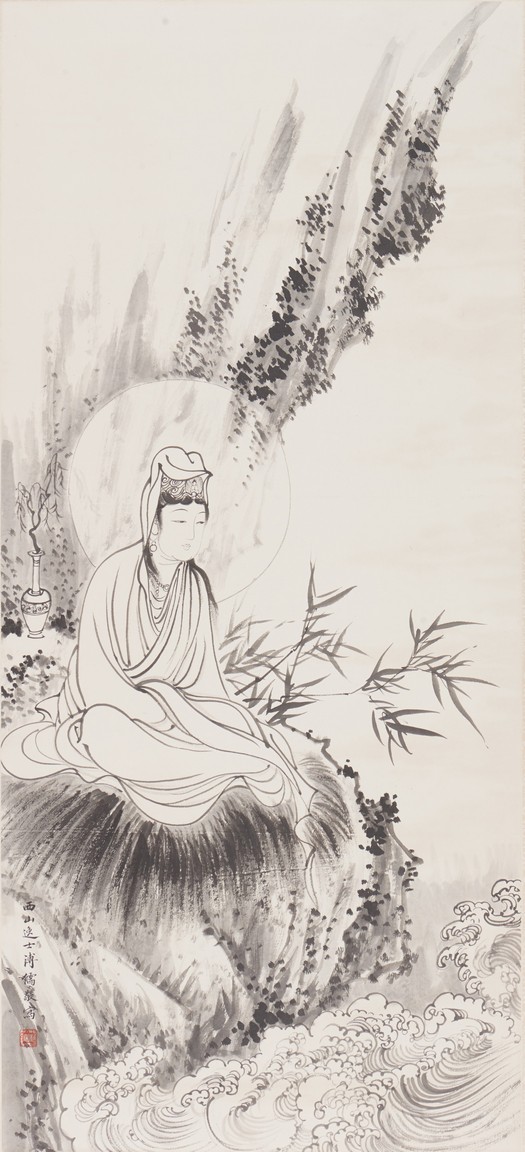 Ink on paper. Hanging scroll. Guanyin. Signed Pu Ru, with one seal of the artist.