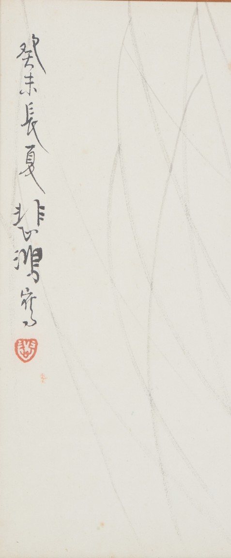 Color and ink on paper. Magpie. Framed. Inscribed and signed Beihong, with one seal of the artist, dated to summer of 1943.