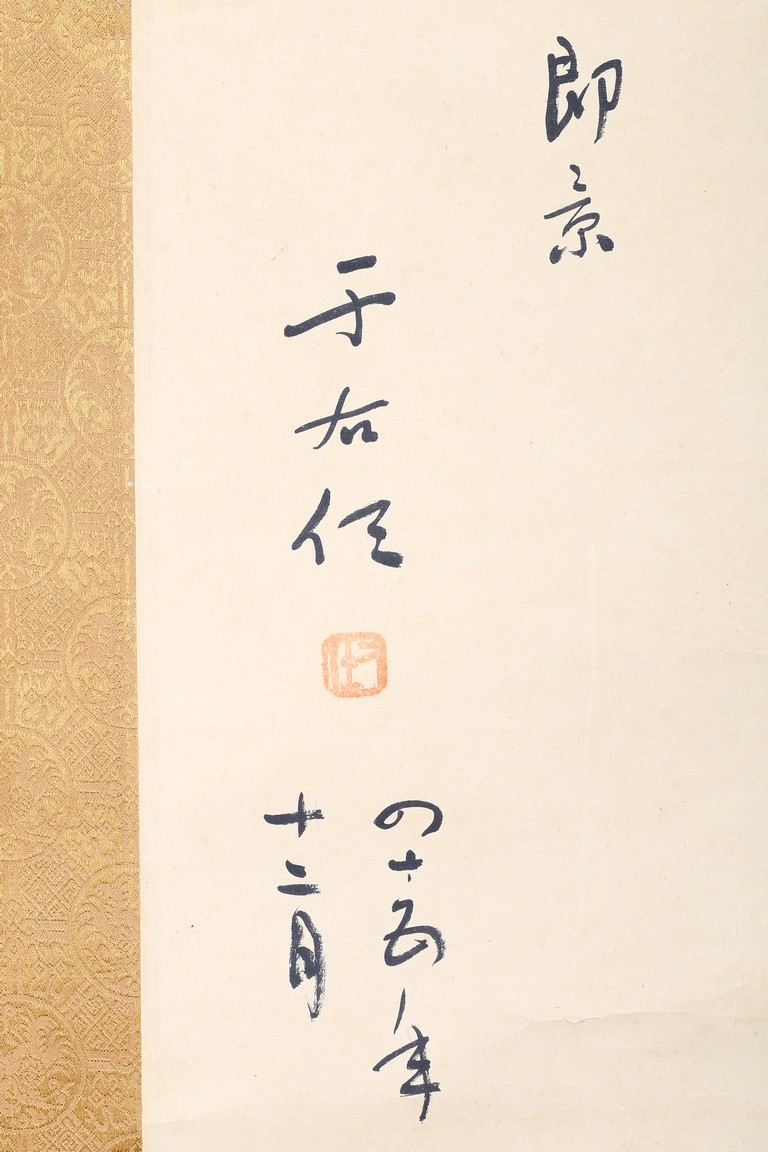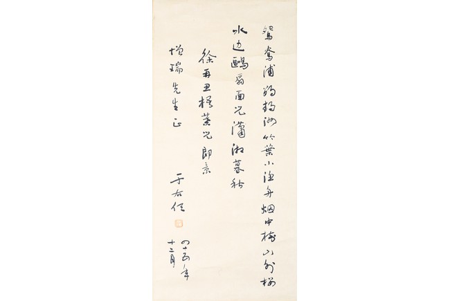 Ink on paper. Hanging scroll. Running script calligraphy. signed Yu Youren, with one seal of the artist,dated to December 1956.