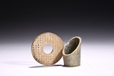 商/周 玉雕一組兩件 古玉璧、古玉把件