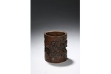 A BAMBOO 'SCHOLARS UNDER PINE TREE' BRUSHPOT