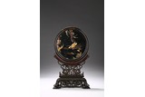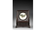 A ROSEWOOD JADE INLAID 'DUCK AND POND' TABLE SCREEN
