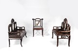 A SET OF THREE ROSEWOOD MARBLE BENCHES AND CHAIR