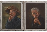 T. WONG: A PAIR OF TWO OIL ON CANVAS 'FIGURE PORTRAIT' PAINTING