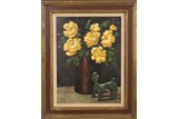 AN OIL ON CANVAS 'YELLOW ROSES' PAINTING