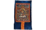 AN EMBROIDERED SILK THANGKA OF JAMBHALA