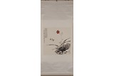 張大千繪 溥儒題 泛舟圖 立軸 設色紙本
