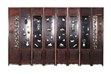 清 黑漆鑲百寶山水樓閣紅木屏風八扇