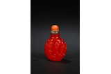A RED GLASS 'SQUIRREL' SNUFF BOTTLE