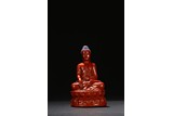 A CARVED CINNABAR LACQUER FIGURE OF BUDDHA