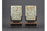 A PAIR OF WHITE JADE 'LANDSCAPE' RECTANGULAR TABLE SCREENS