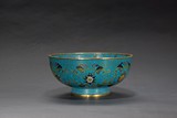 清 粉彩黃地蝴蝶紋開光壽字盆