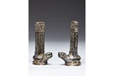 A PAIR OF SILVER TURTLE SUPPORTED STELES