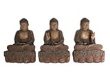 A SET OF THREE LARGE WOODEN STATUES OF SEATED BUDDHA