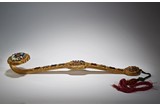 A GILT-BRONZE GEMS MOTHER-OF-PEARL INLAID RUYI SCEPTER