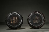 A PAIR OF WOOD CHRYSANTHEMUM PETAL PATTERN BOXES