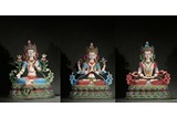 A SET OF THREE LARGE PAINTED BRONZE BODHISATTVAS