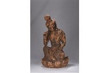 A LARGE WOOD CARVED FIGURE OF BODHISATTVA