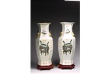 A PAIR OF FAMILLE ROSE 'BOGU' HEXAGONAL VASES